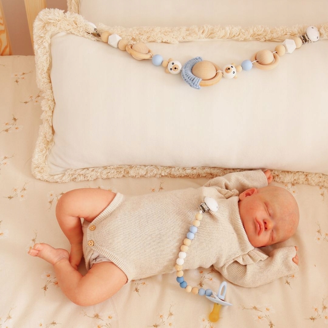 Girlanda wykonana jest z elementów o różnych kształtach, wielkościach, strukturach i kolorach.Jest lekka dzięki czemu łatwo ją zamontować we wózku,nosidełku lub koszu mojżesza. Zajmie niemowlaka podczas spaceru. Miła dla oka mamy i dziecka. Dokładamy wszelkich starań aby nasze produkty były wykonane w dobry sposób.Nasze wyroby dedykowane są już dla najmłodszych dzieci.Ta oryginalna ozdoba ma opływowe, wyszlifowane kształty, które będą bezpieczne dla niemowlaka .Wykonana z największą dbałością o detal.Idealnie nadaje się na prezent,niezbędna w kompletowaniu wyprawki.Każdy produkt Mymami jest unikalny – wszelkie nierówności lub zabarwienia są naturalnym czynnikiem powstałym w procesie ręcznej produkcji.Wykonana została z wysokiej jakości drewna oraz bezpiecznego silikonu.Nie zawiera BPA, ftalanów, PCV, lateksu ani ołowiu.Produkt dopuszczony do obrotu w UE zgodnie z posiadanym certyfikatem CE oraz zgodnością z normą EN-71 Do wyrobu zawieszki użyto sznurka bawełnianego z certyfikatem OEKO-TEX.