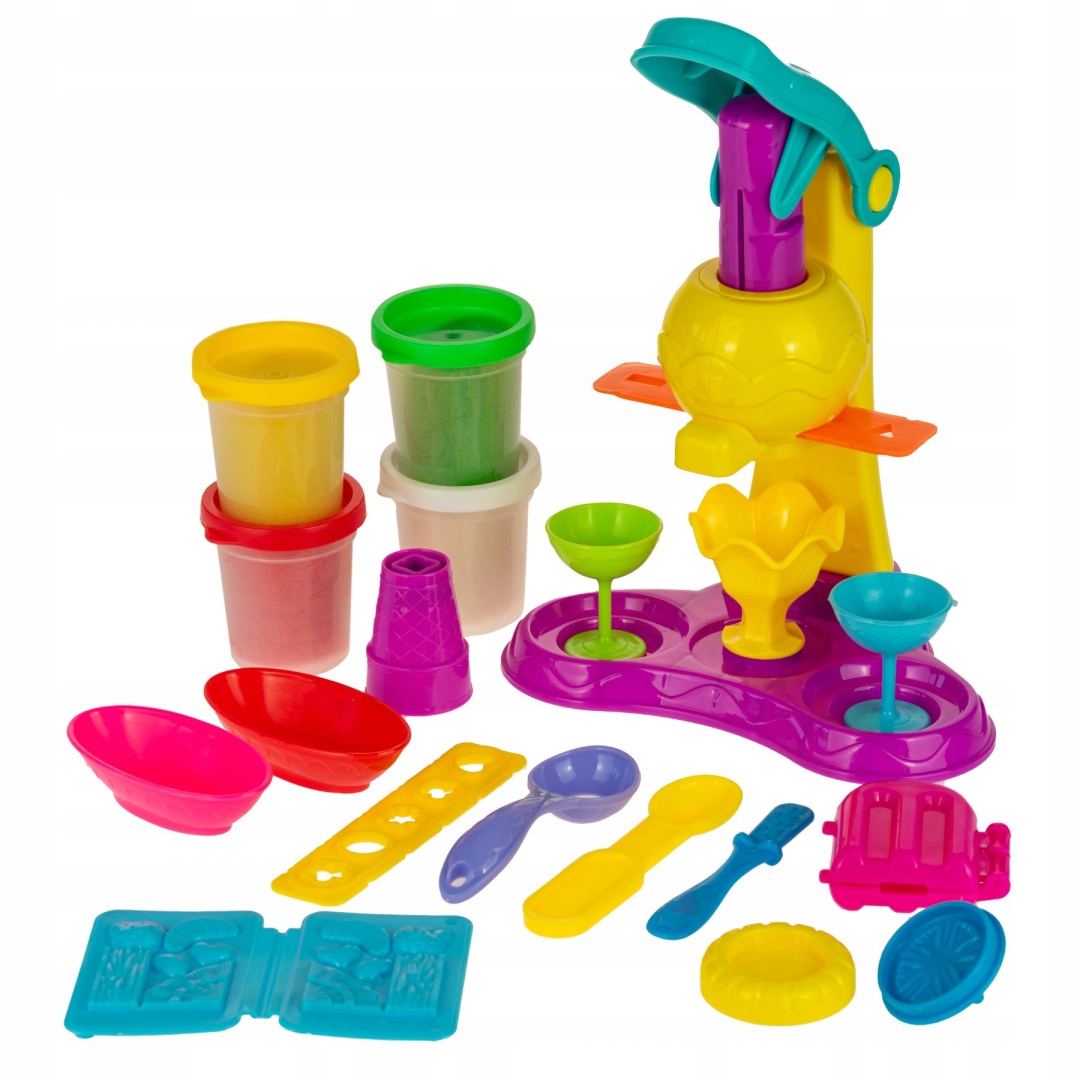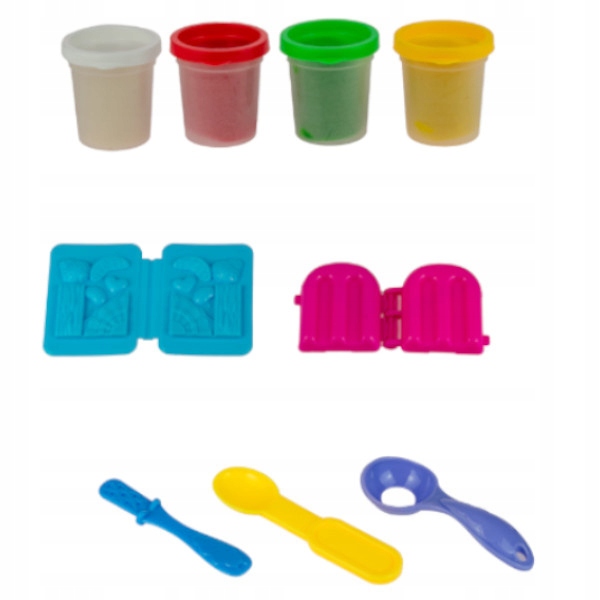 - Zestaw zawiera: maszynkę do formowania masy + akcesoria i 4 kubeczki masy.