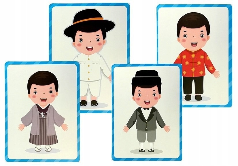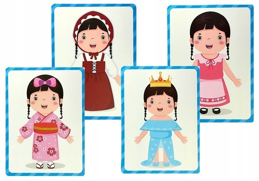 Elementy układanki to 59 magnesów z elementami ubrań i 8 kart z przykładowymi, gotowymi wzorami. Opakowanie jest ze sztywne w formie książki, a plansza magnetyczna jest wewnętrzną stroną okładki. Idealne na prezent.