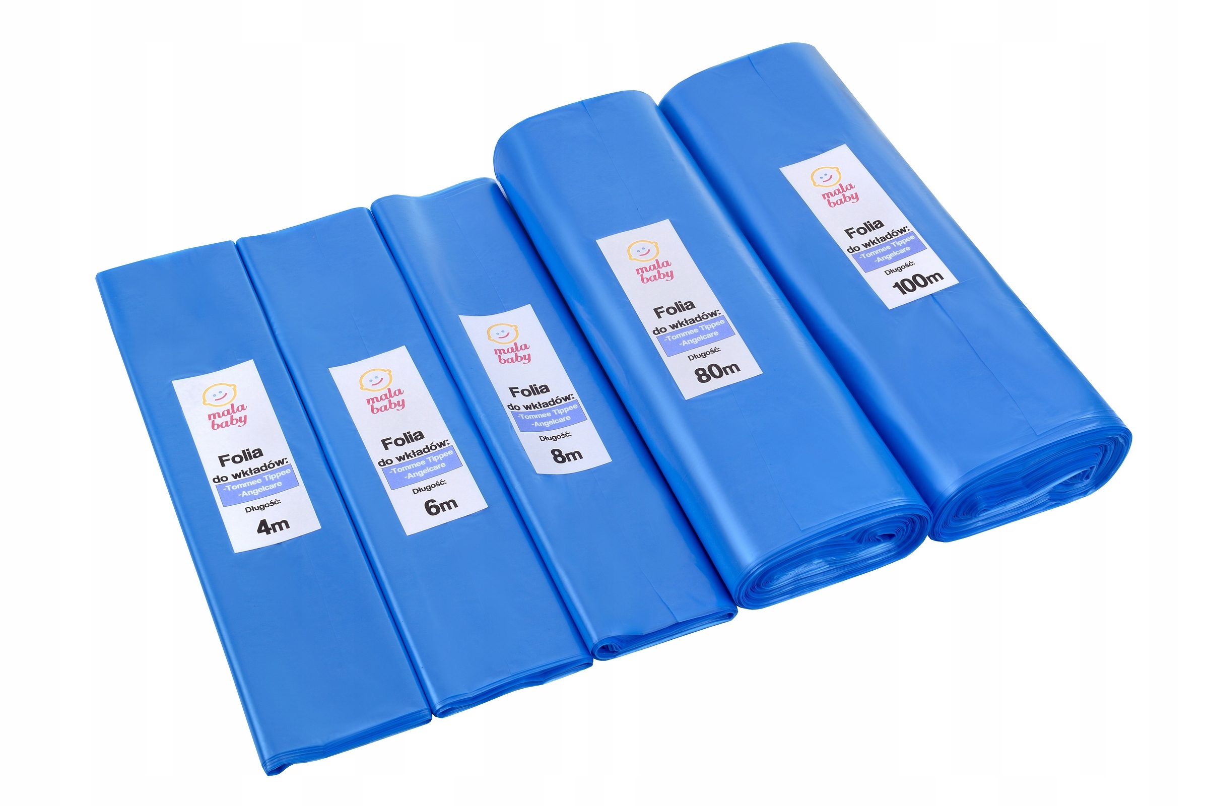 wysokiej jakości, warstwową folię polietylenową High Density o skutecznym działaniu barierowym i antybakteryjnym dopasowaną do waszych wkładów do koszy na pieluchy.