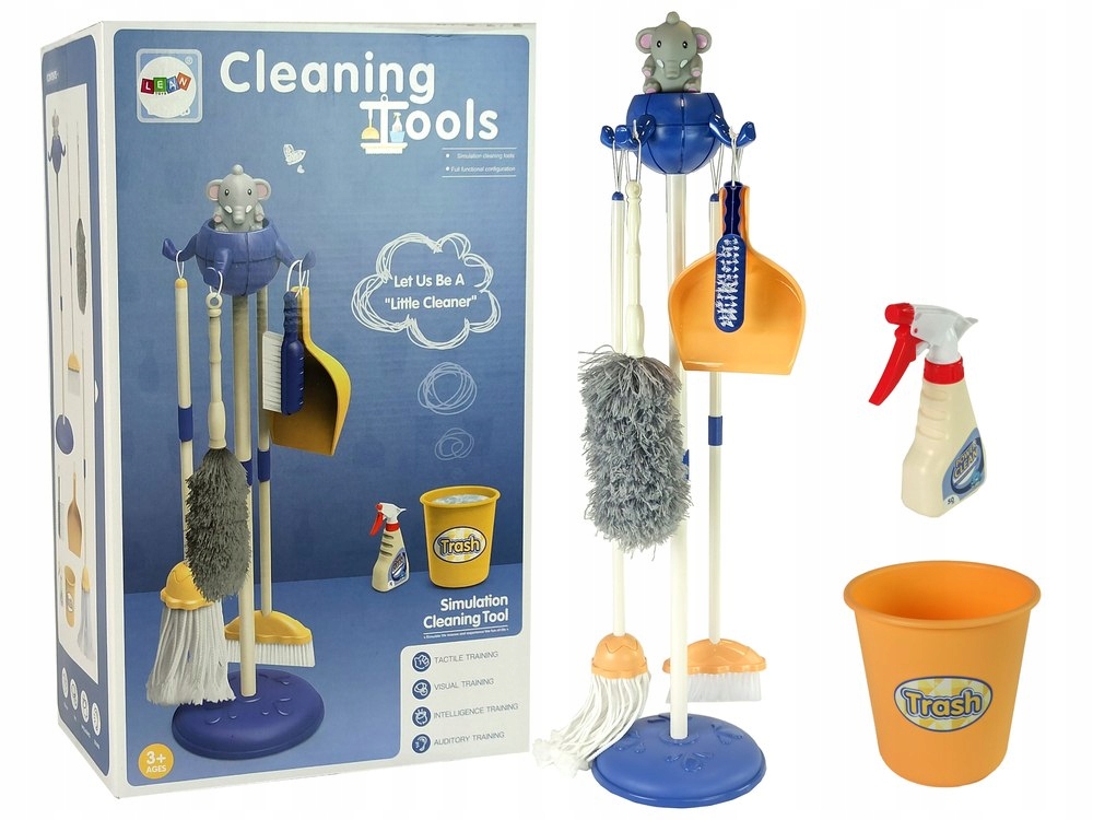 zestaw do sprzątania to wysoce profesjonalny zestaw dla każdego malucha, który lubi pomagać rodzicom podczas wykonywania codziennych obowiązków, jakimi są porządki w domu. Dziecięca konstrukcja i kolorystyka zestawu sprawi, że stojaczek z akcesoriami będzie bardzo pomocny podczas przyuczania dziecka do samodzielnego dbania o czystość we własnym pokoju. Dzięki niemu w prosty sposób można połączyć przyjemną zabawę z pożytecznym zadaniem, co z pewnością zaowocuje w przyszłości. Dużą zaletą zestawu są rewelacyjne akcesoria, będące wierną kopią ich pełnowymiarowych wzorców, dzięki czemu dziecko może poczuć się samodzielniej i doroślej, sprzątając razem z pozostałymi domownikami.