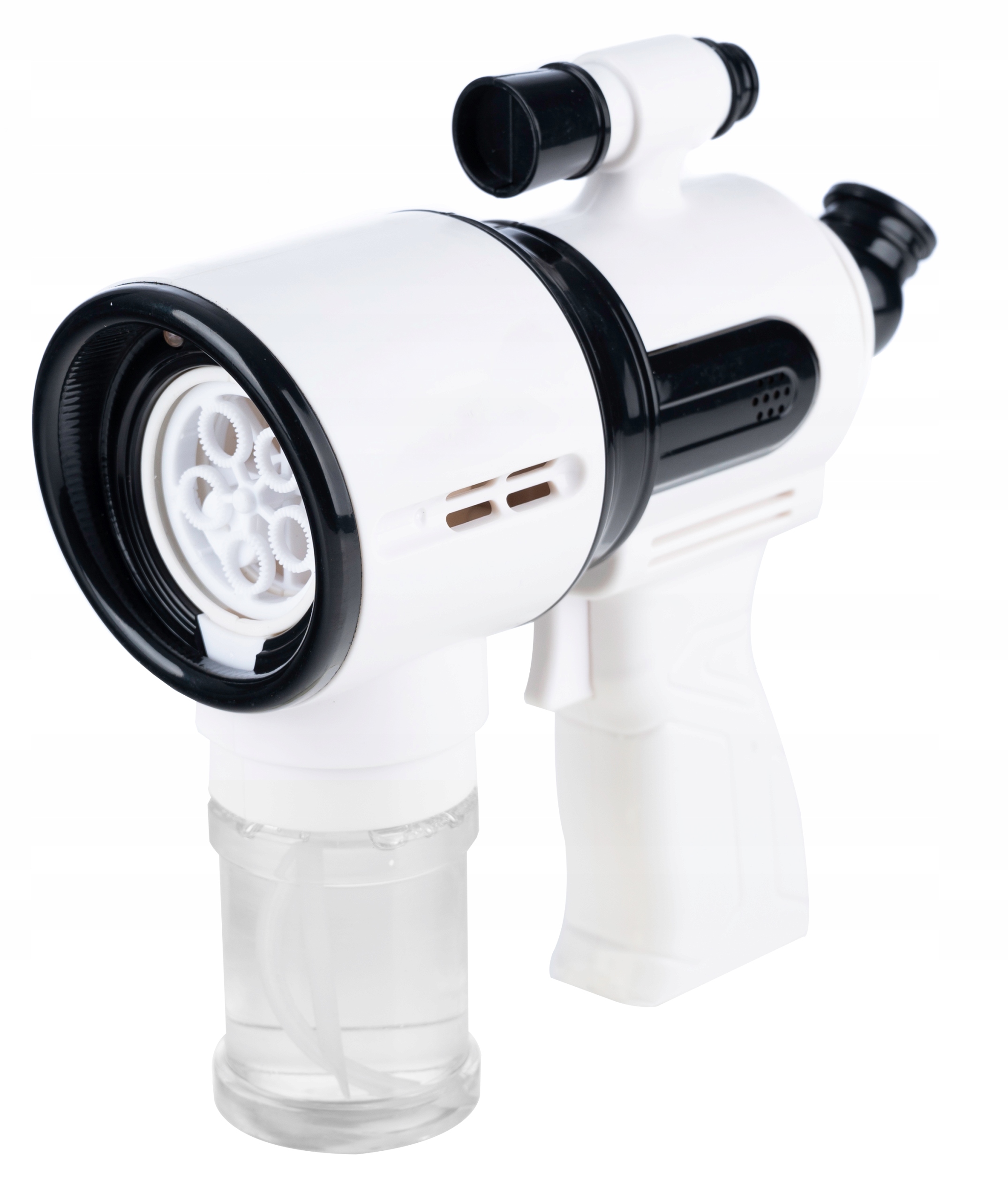 - pistolet odtwarza dźwięki podczas wytwarzania baniek (możliwość wyłączenia muzyki przyciskiem)