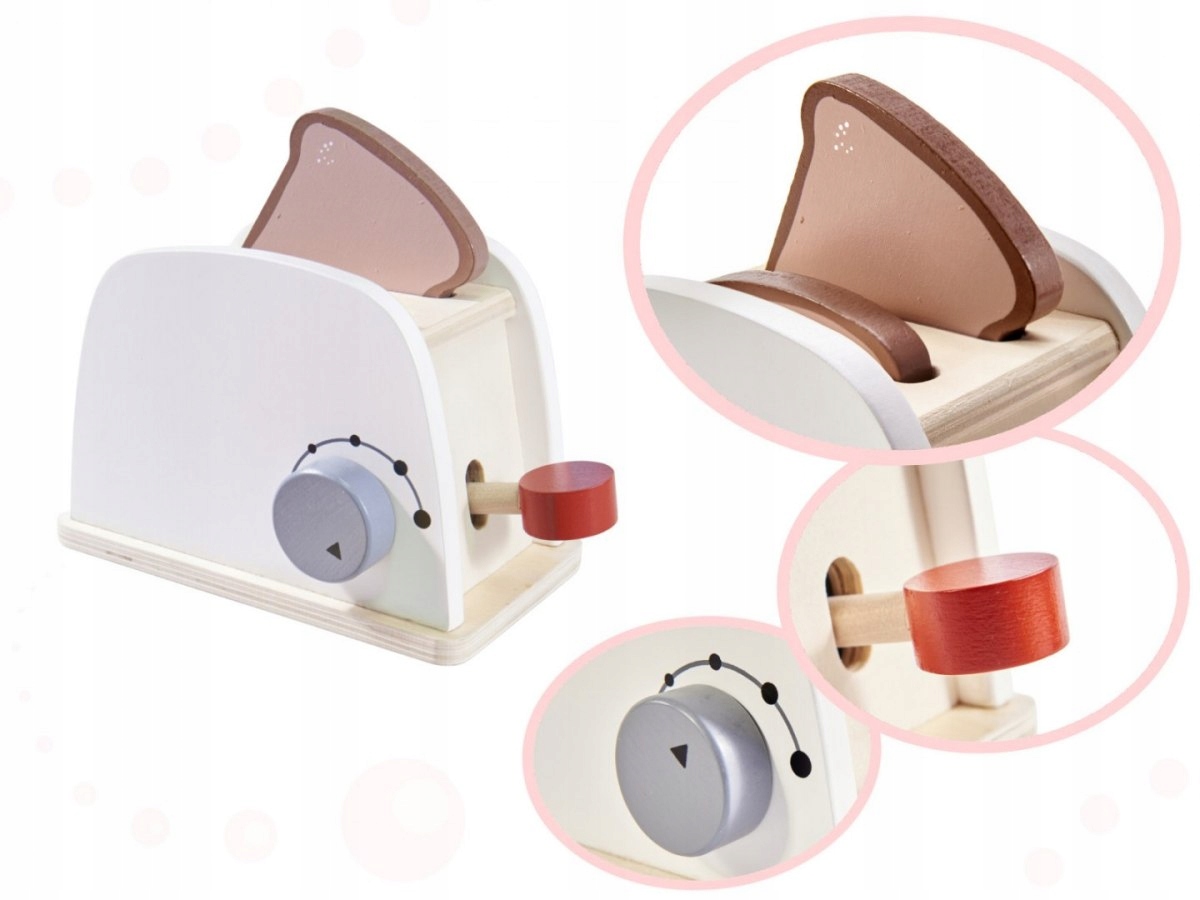 Zarówno toster, jak i dołączone akcesoria wykonano z dużą dbałością o detale. Każdy element precyzyjnie wyszlifowano. Do ich pomalowania użyto bezpiecznych farb.