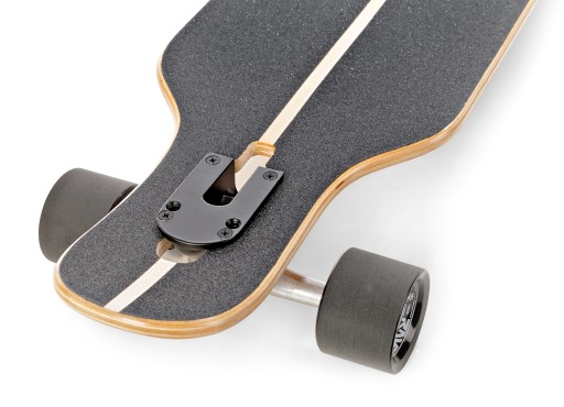 - Дроп-Тхру- гусениці, встановлені через спеціальний отвір у палубі, роблять її низькою над землею. Це полегшує відштовхування і знижує центр ваги, що істотно впливає на стійкість дошки.
