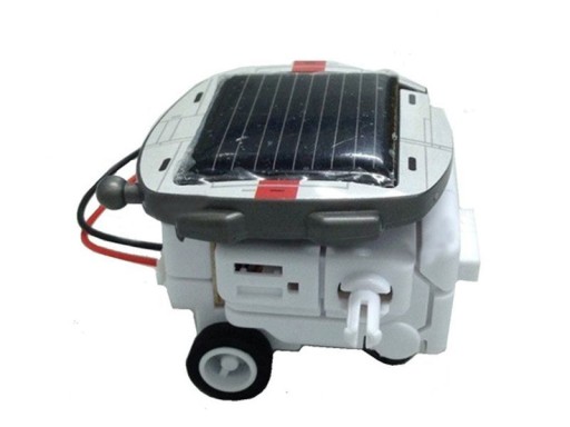 Заряджена сонячна панель приводить в рух двигун і приводить іграшку в рух.