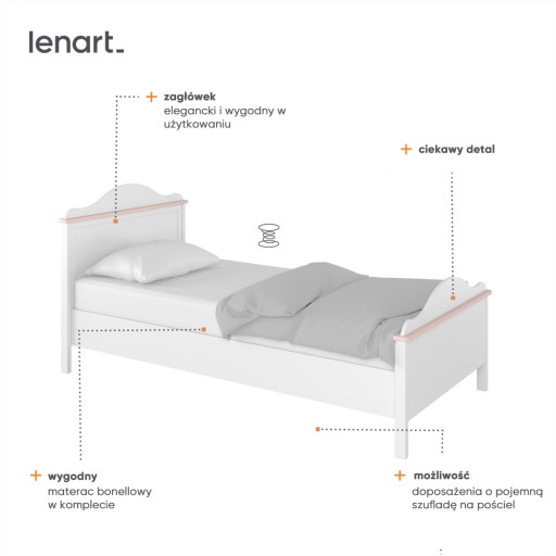 Міцне зручне ліжко з матрацом бонель у вартості. Високе узголів'я із заокругленим кінцем надає романтичний характер.