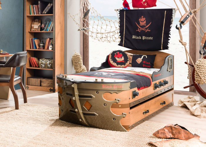 Kolekcja BLACK PIRATE została zaprojektowana z myślą o dzieciach a nawet młodzieży. Potrzeba oryginalności w tematyce i wyrażaniu siebie w połączeniu z kreatywnością autorów znalazła odzwierciedlenie w kolekcji nawiązującej do tematyki pirackiej. Kolekcja ,którą prezentujemy to zestaw modułów mebli , który sprawi, że wnętrze stanie się niepowtarzalne i przeniesie w specyficzny klimat .