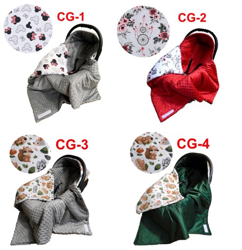 2-стороннє, має вшиту липучку і застібки для пристосування ковдри до дитини. Вирізи дозволяють переміщати ремені безпеки як у 3, так і в 5 точках /роздільні/