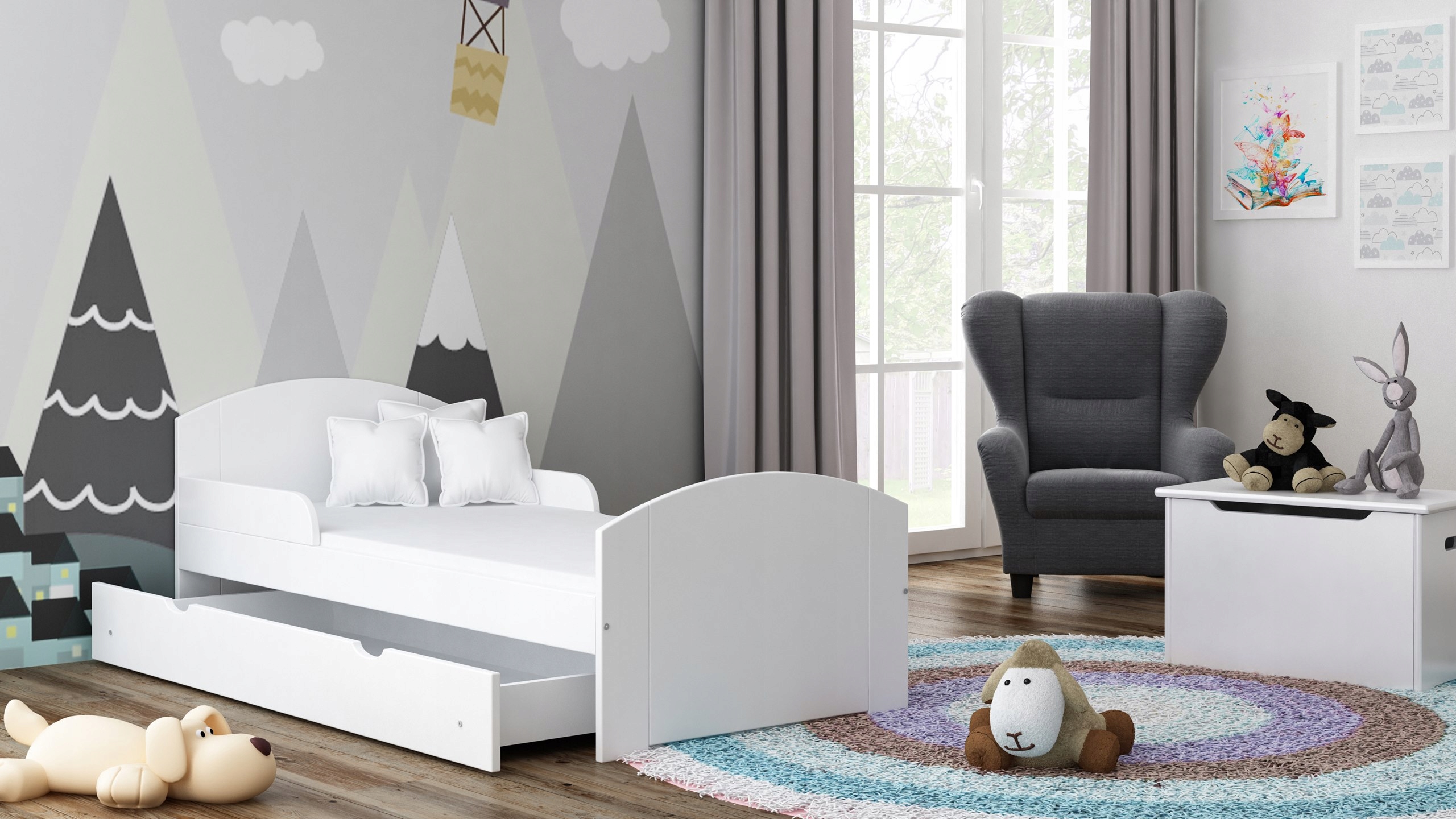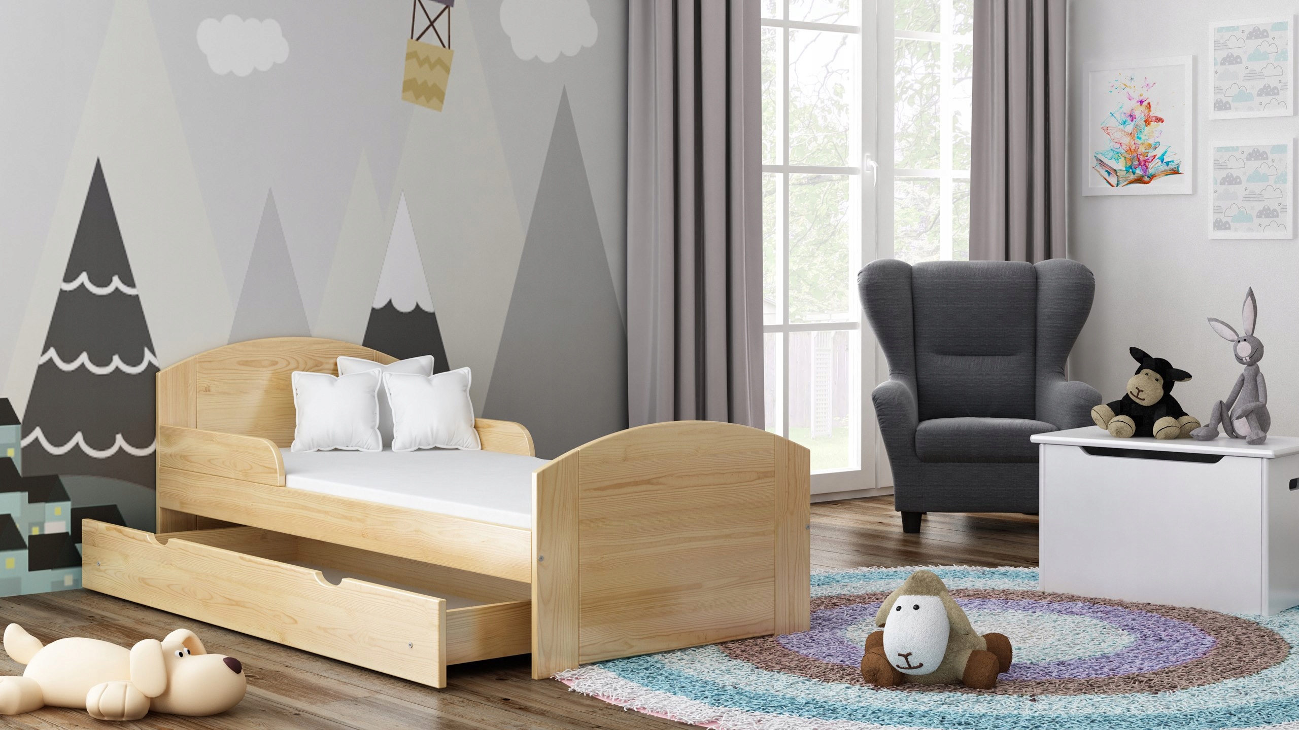 - usypianie, czytanie, zabawa czy bitwa na poduszki, to wszystko gwarantuje wytrzymała konstrukcja łóżka i mocny stelaż,