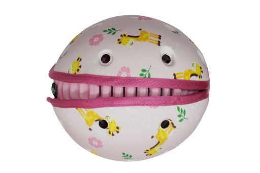 - Гнучке з'єднання, що проходить посередині шолома, забезпечує гарне прилягання до розміру голови дитини. Додатково можна регулювати довжину застібки.