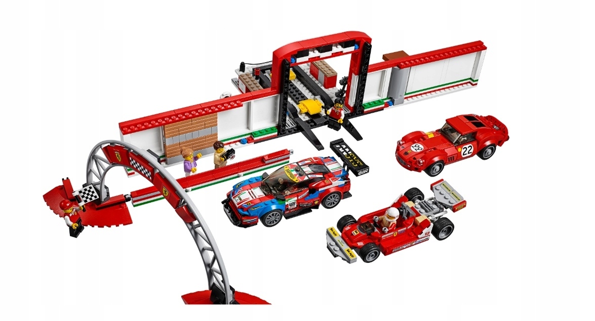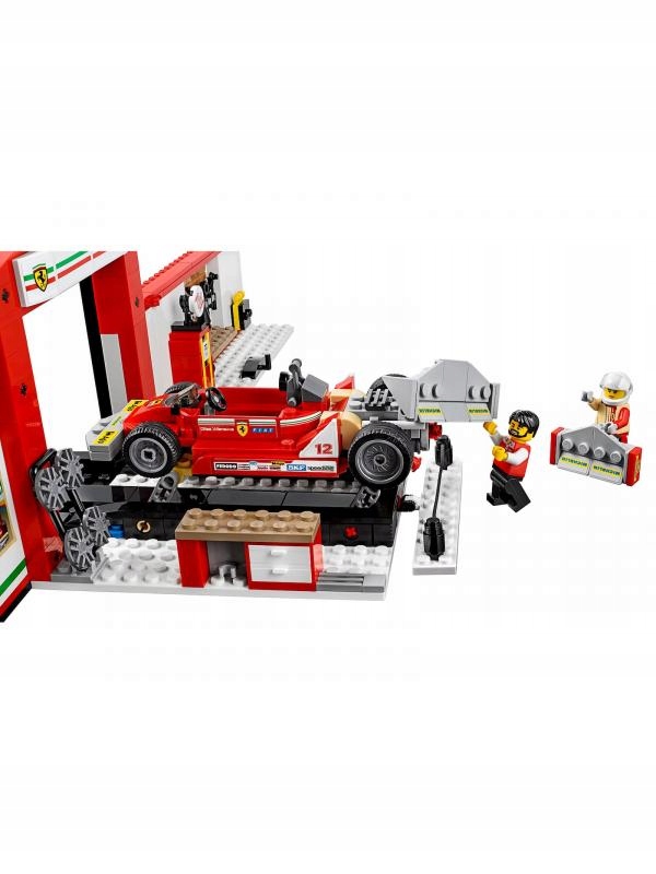Ten zestaw zawiera pięknie szczegółowy model garażu należącego do zespołu Ferrari. Jej ściany pomalowano na biało-czerwono z dodatkiem symboli i logotypów. Sklepienia sufitowe i listwy przypodłogowe ozdobione są kontrastowymi paskami nawiązującymi do włoskiej flagi. Przestrzeń wnętrza podzielona jest na trzy sekcje tematyczne. Dzięki specjalnym mocowaniom można zmieniać położenie sekcji, nadając im liniowy lub kształt litery U.