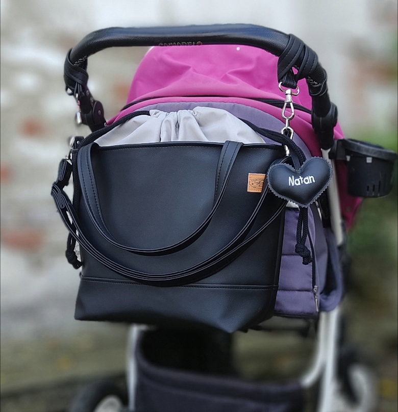 Torba jest wykonana ze szczególną starannością i dbałością o każdy szczegół. Oprócz praktycznych uchwytów z ekoskóry, torba posiada również dwa zaczepy do zamocowania na pałąk wózka/spacerówki.