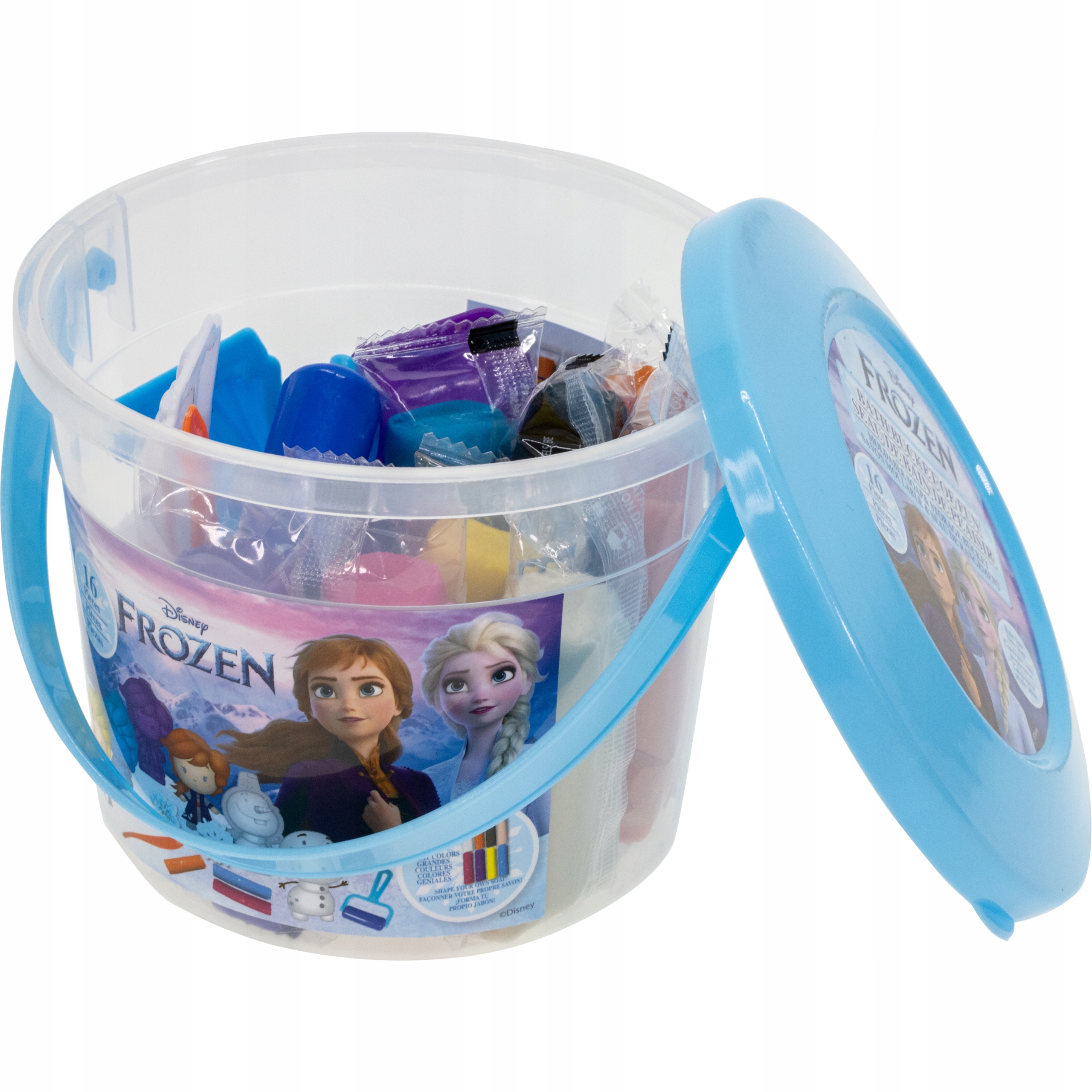 all in an attractive, practical bucket with images of princesses Anna and Elsa.