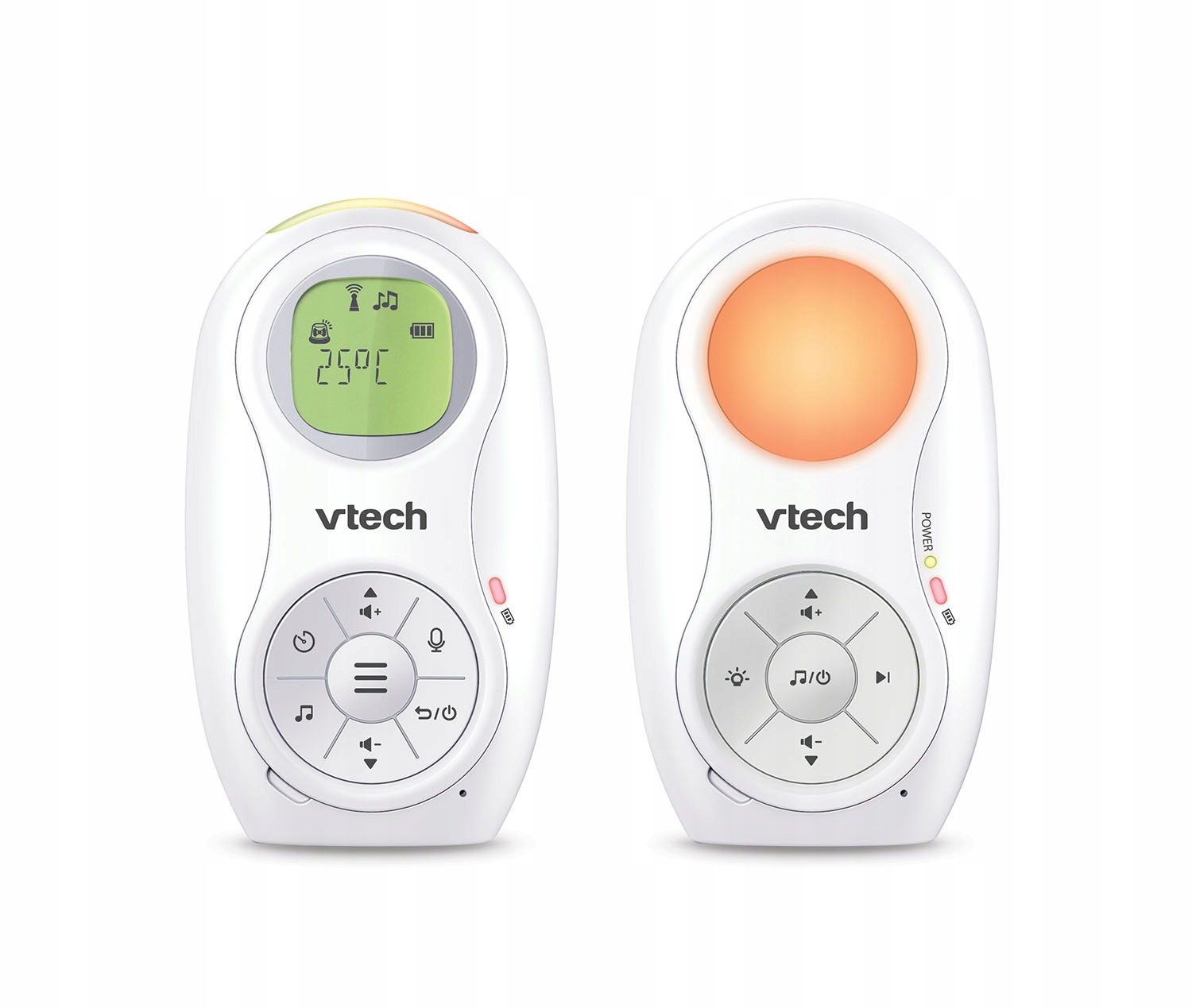 Niania elektroniczna audio VTech DM1214 z akumulatorkami w nadajniku i odbiorniku oraz lampką nocną