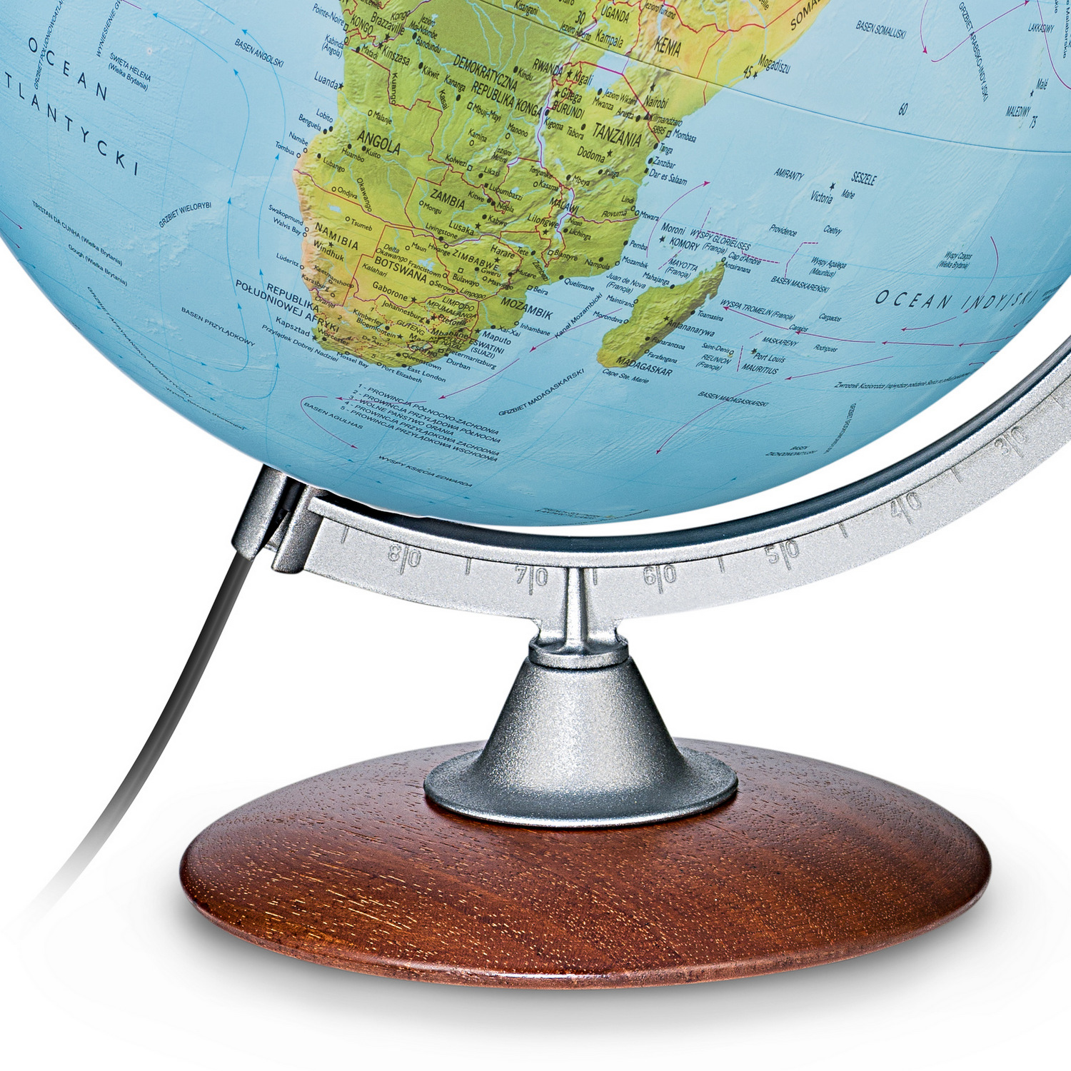 Masz ochotę na więcej? Poza tym, że chcesz zobaczyć, pragniesz także dotknąć, poczuć? W takim razie wybierz globus plastyczny. Oprócz informacji tradycyjnie umieszczanych na globusach zapewnia on dodatkowe zmysłowe doznania fizyczne, wizualne i dotykowe. Dzięki temu główne pasma górskie na świecie możesz teraz nie tylko zobaczyć, ale również... dotknąć. Szczególną atrakcję o walorach poznawczych stanowi fakt, że po podświetleniu na mapie fizycznej pojawiają się dodatkowe informacje w postaci mapy politycznej. Dyskretne podświetlenie nadaje pokojowi, salonowi lub sypialni ponadczasowy styl, podkreślając harmonię pomieszczenia. Dzięki temu może posłużyć jako oryginalna lampka, wprowadzając Cię w sny o podróżach.