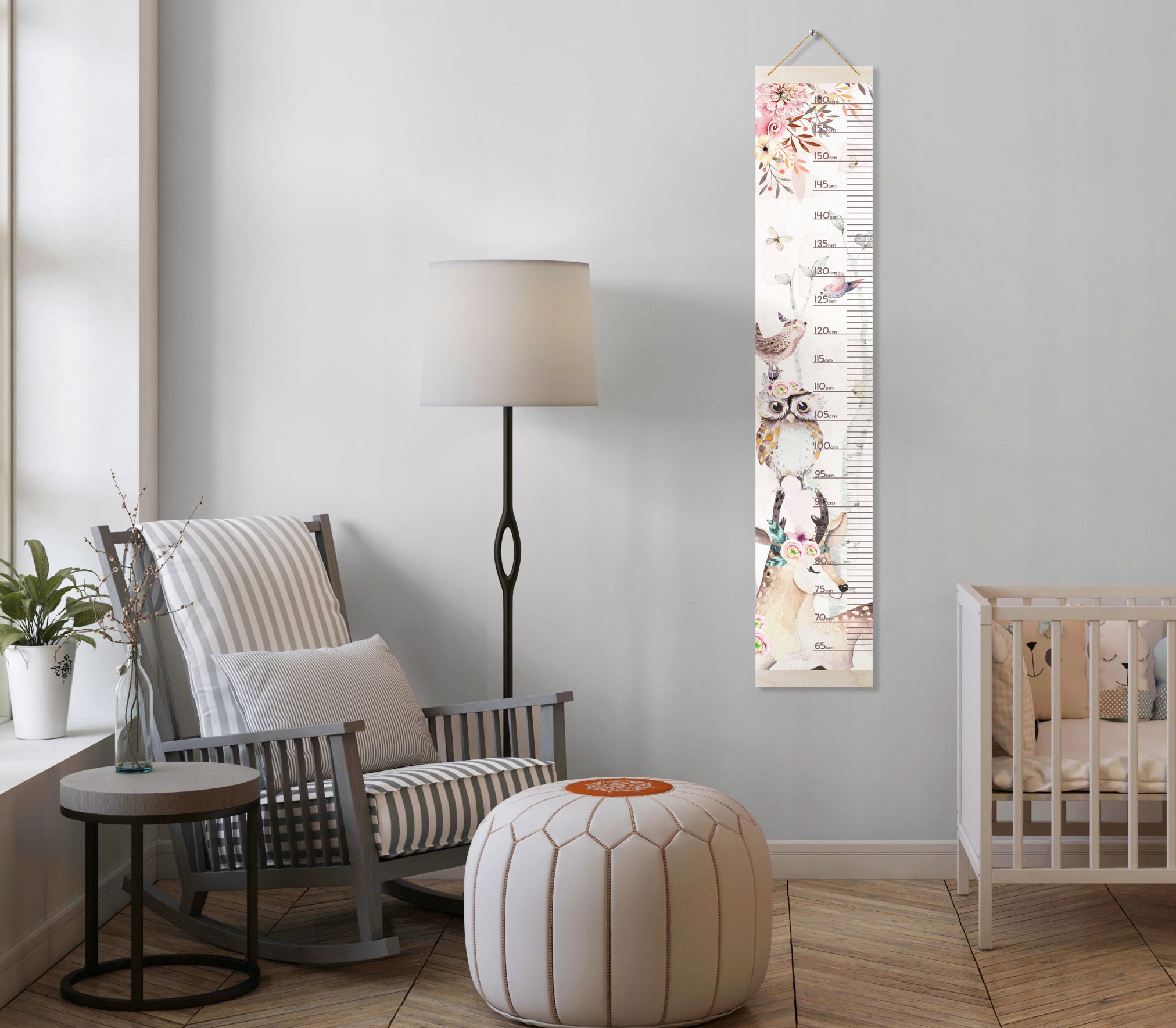 Kolorowe miarki wzrostu z dzikimi zwierzętami to wspaniała dekoracja do pokoju dziecięcego. Wzór z motywem zwierzątek boho spodoba się każdej wielbicielce zwierząt. Dzięki montażowi na sznurku dekoracja może posłużyć przez długi czas, można ją dowolnie przewieszać oraz zdjąć na czas np. remontu.