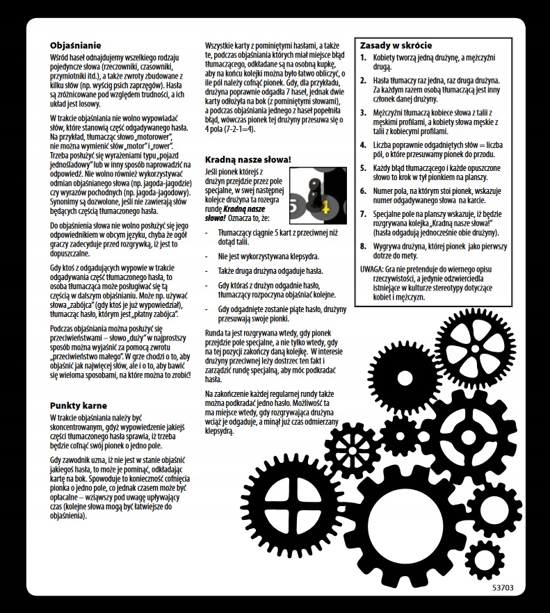 MĘŻCZYŹNI SĄ Z MARSA, A KOBIETY Z WENUS… ? W tej grze szanse na zwycięstwo rosną, jeśli znamy świat płci przeciwnej. Trafnie wyjaśniając słowa, gracze przesuwają swe pionki ku mecie.