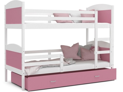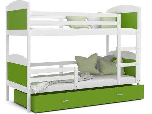 Двоярусне ліжко MATEO 160x80 було створено з думкою про хороших братів і сестер. Стійка конструкція гарантує безпечне використання меблів. Додаткова машина - це контейнер для постільної білизни, який пропонує додатковий корисний простір. Заокруглені вставки створюють відчуття захисту для наших дітей під час сну. колесо пофарбоване безпечними для дітей екологічними фарбами. У набір входять поролонові матраци та основа FLEX для забезпечення міцного сну наших дітей.