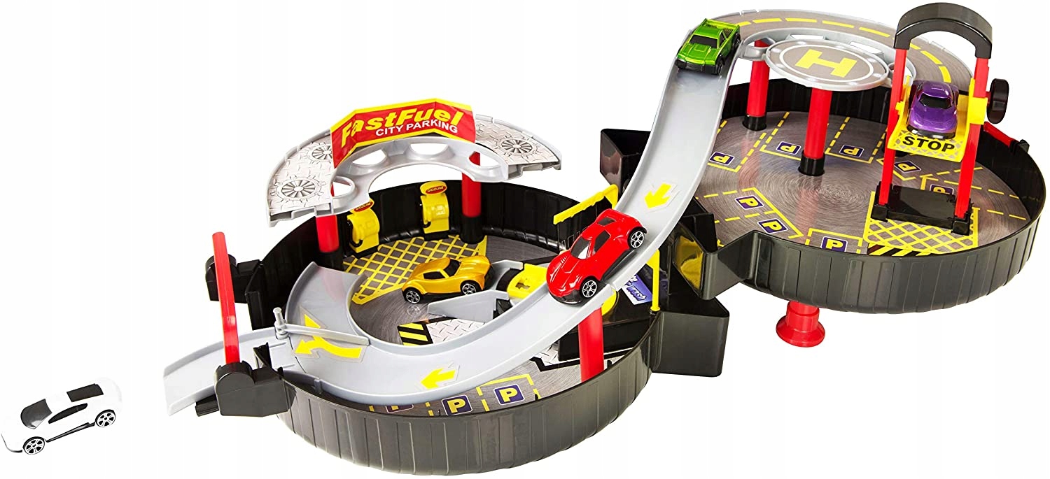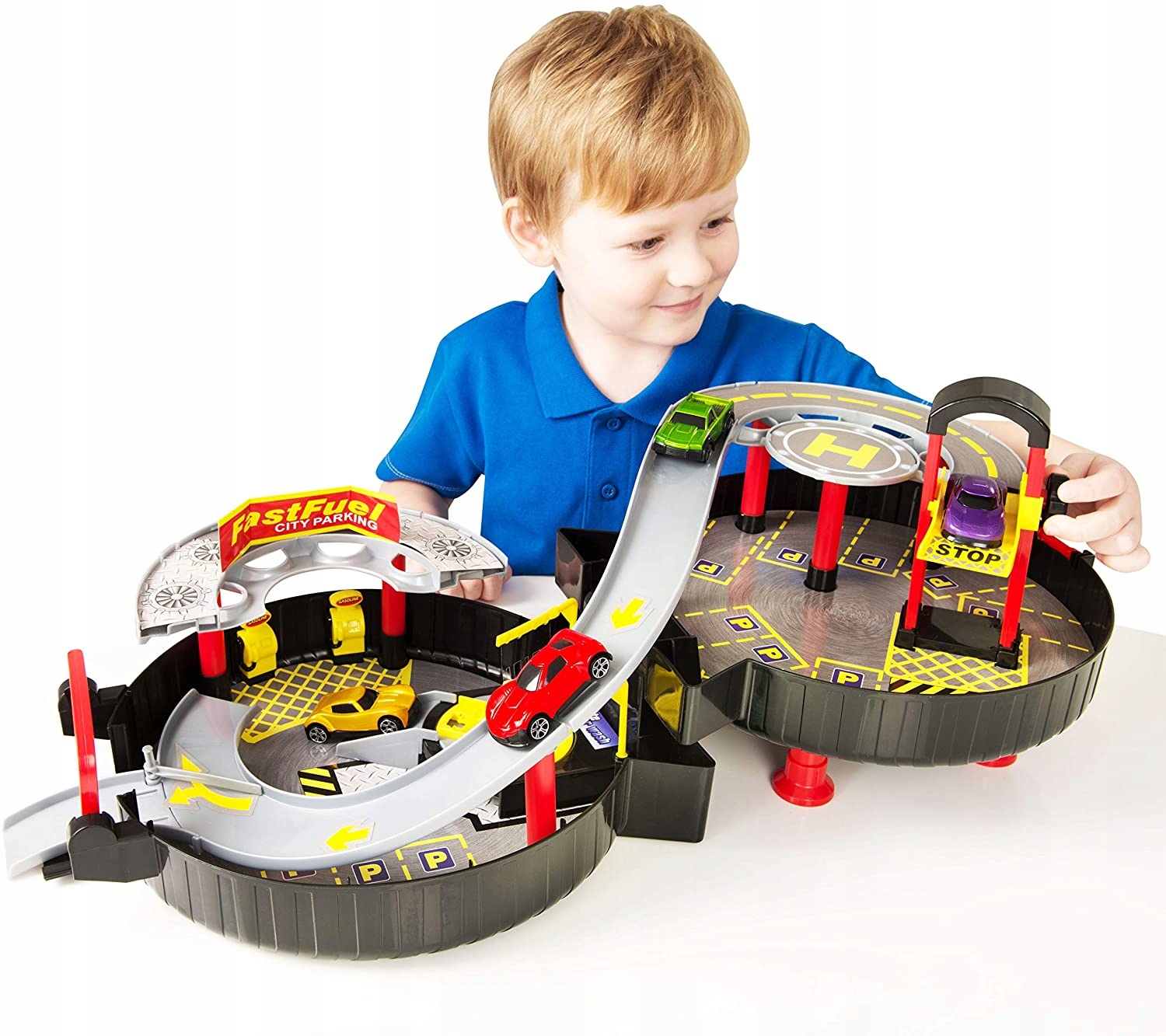 Przenieś zabawę z pojazdem na nowy poziom. Ten zabawny zestaw do zabawy na parkingu z 2 poziomami zachęca do pomysłowej zabawy.