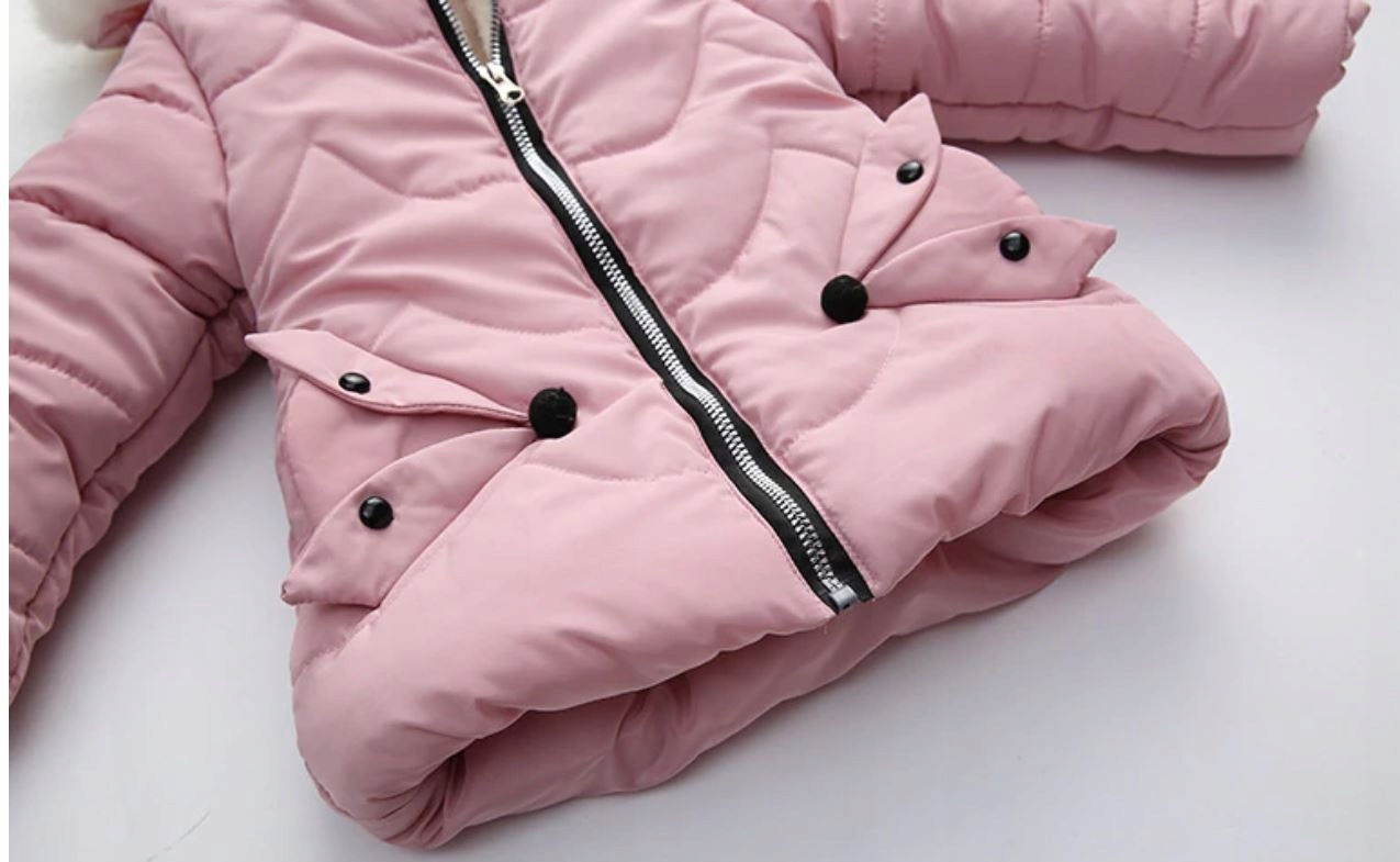 Kaptur odpinany, obszyty jest miękkim futerkiem, po zewnętrznej stronie znajdują się uszy.