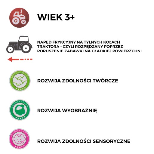 Набір ТРАКТОР РЕСОРК + СІЛЬСЬКОГОСПОДАРСЬКА МАШИНА - це ідеальний набір для юного фермера, який з дитинства може зіграти роль справжнього фермера.