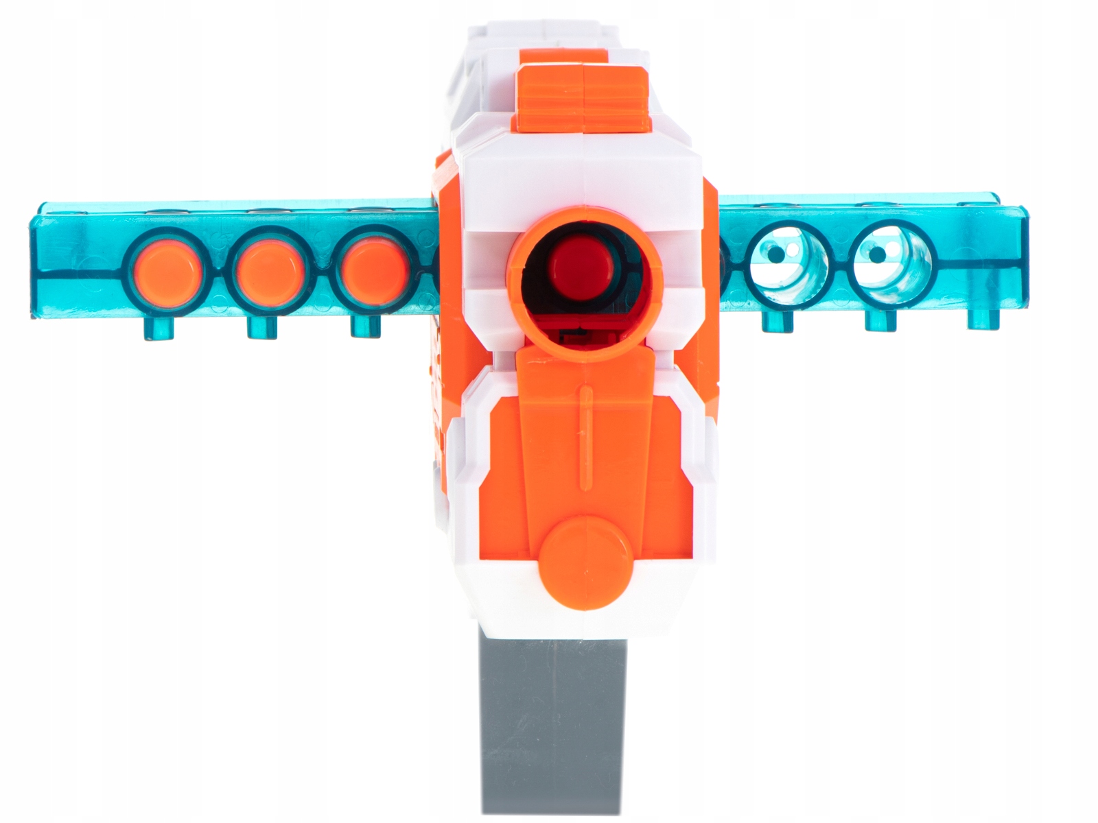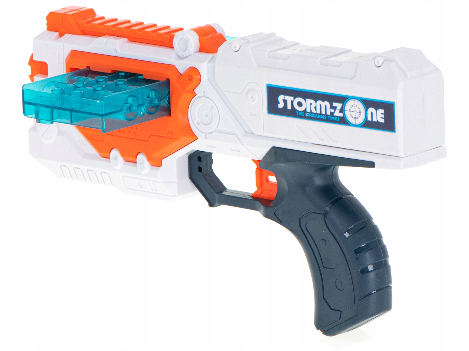 Żywe kolory przypominają bronie z popularnych gier komputerowych co sprawia, że zabawka jest atrakcyjna dla dzieci w różnym przedziale wiekowym.