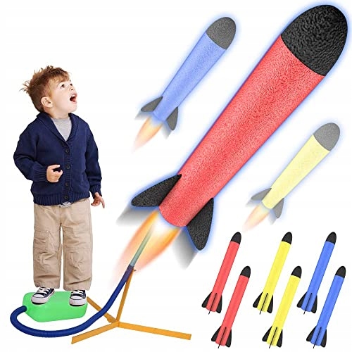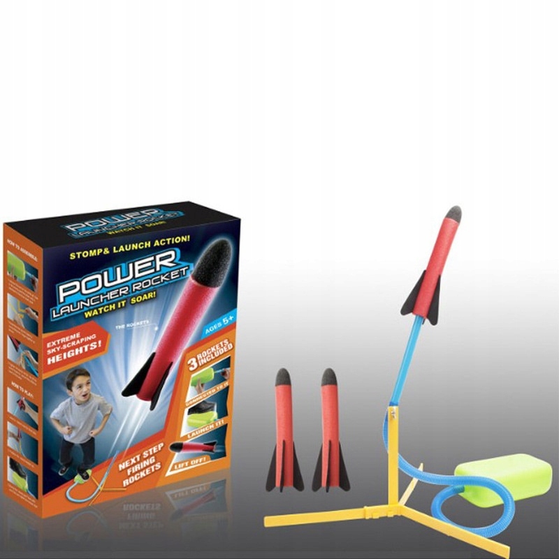Świetna zabawka na zabawę w ogrodzie, która pochłonie bez reszty nie tylko dzieci. Obsługa wyrzutni jest banalna , bez problemu poradzą sobie z nią wszyscy – wystarczy nadepnąć na elastyczny zbiornik z powietrzem aby odpalić rakietę.