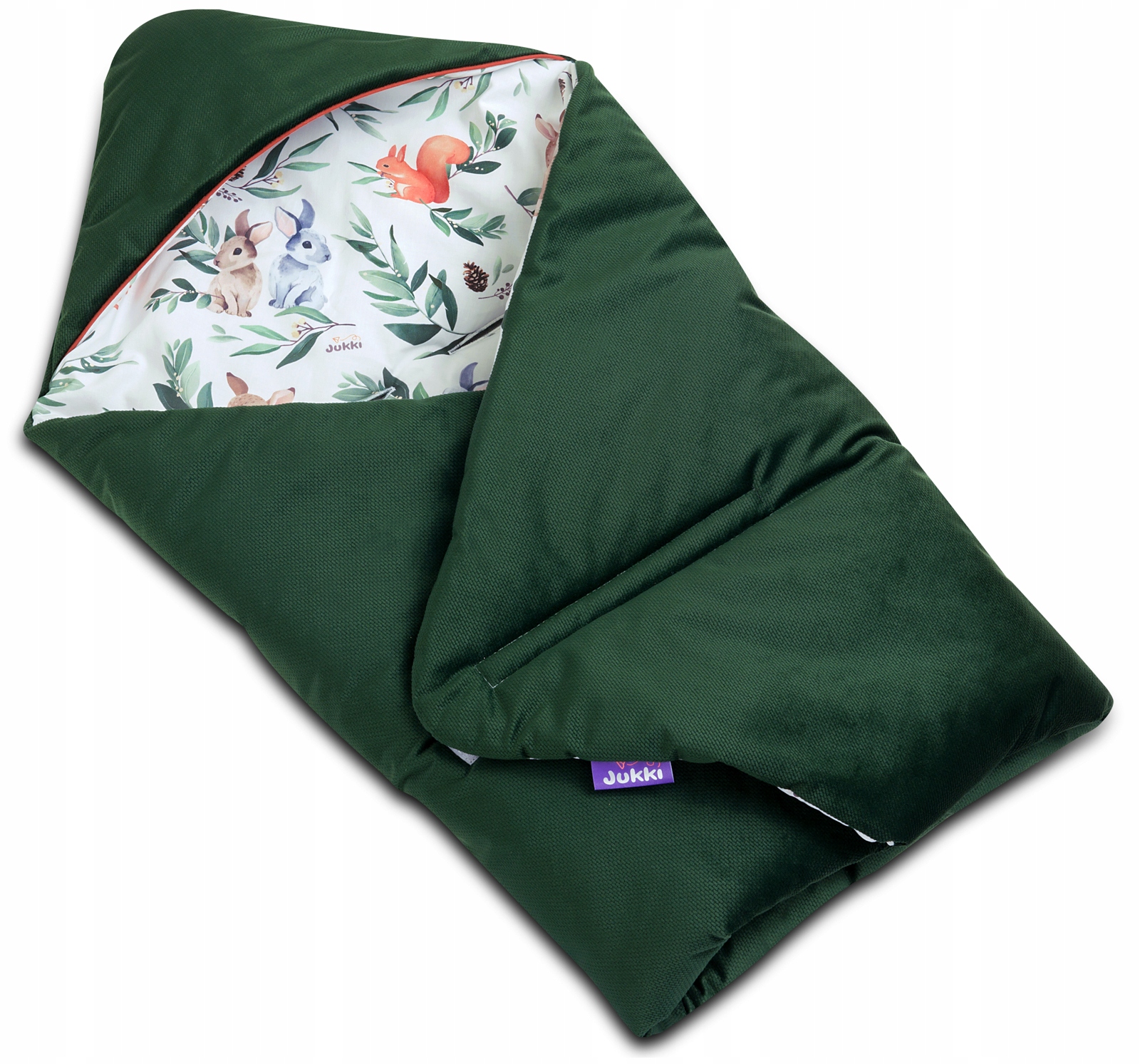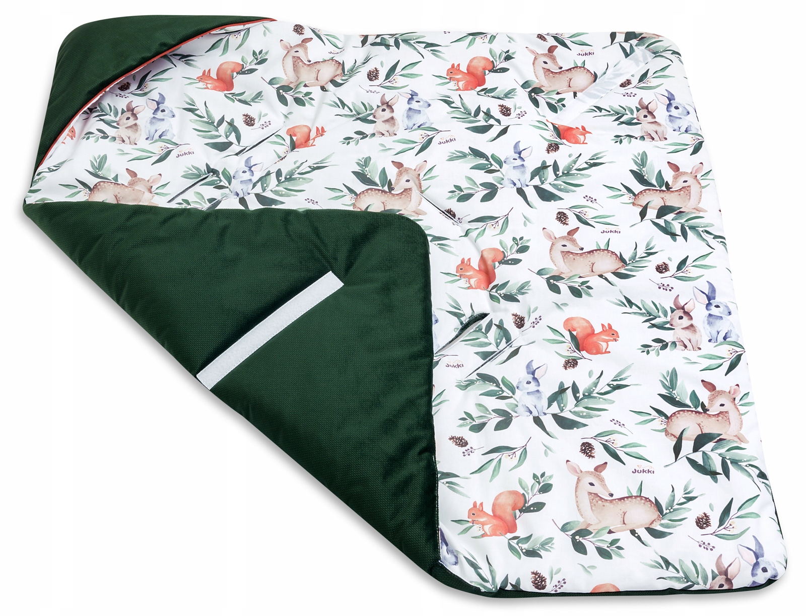 Kocyk, otulacz Jukki wykonany jest z mięciutkiej w 100% oddychającej tkaniny bawełnianej oraz aksamitnej i miłej w dotyku tkaniny Velvet. Wnętrze kocyka, otulacza składa się z warstwy antyalergicznej włókniny silikonowej, która stanowi idealne wypełnienie sprawiając, że kocyk daje poczucie miękkości i ciepła dla Maluszka. Kocyk, otulacz Jukki dzięki swoim właściwościom dedykowany jest na wiosnę, chłodniejsze lato, jesień oraz jako okrycie wewnątrz samochodu podczas podróży w zimie.