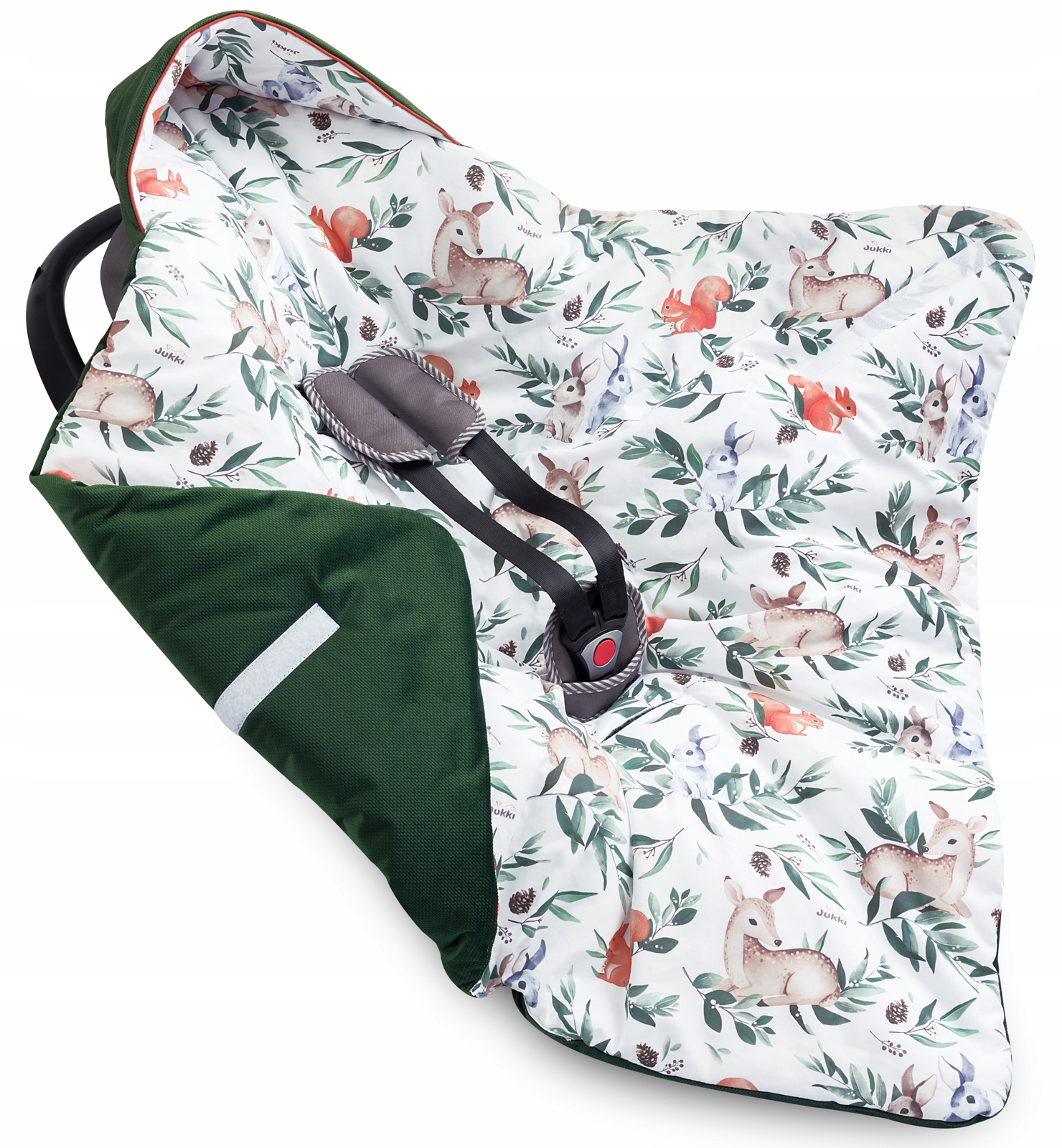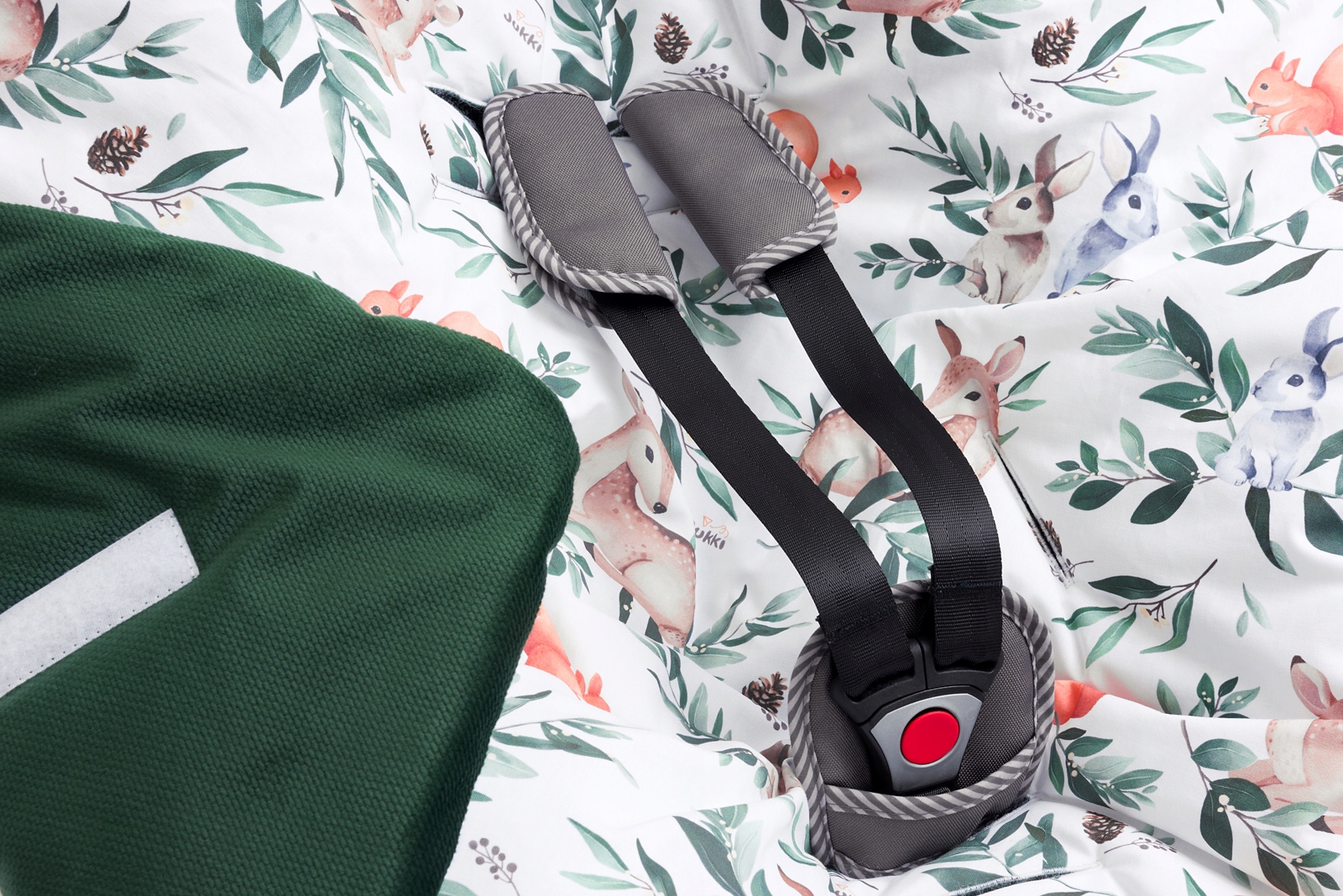 Otwory na pasy zostały umieszczone w strategicznych miejscach, dzięki czemu kocyk, otulacz Jukki pasuje do wszelkiego rodzaju fotelików, nosidełek, bujaczków, gondoli oraz spacerówek. Dzięki temu możesz prawidłowo poprowadzić oraz zapiąć pasy bezpieczeństwa, nie pozostawiając żadnych niebezpiecznych luzów. Jest to szczególnie ważne podczas zimnych dni, kiedy ubieramy dziecko w kurteczkę czy kombinezon. Pamiętaj, że pasy w foteliku trzeba dobrze docisnąć, tak aby przylegały do ciała dziecka, a nie do jego ubrań.