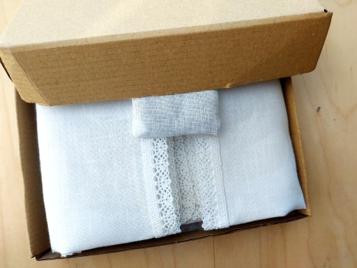 Упакований в картонну коробку з білизною, всередині якої знаходиться невеликий лавандовий мішечок, завдяки якому хустка приємно пахне, може стати гарним, стильним подарунком для елегантної жінки.