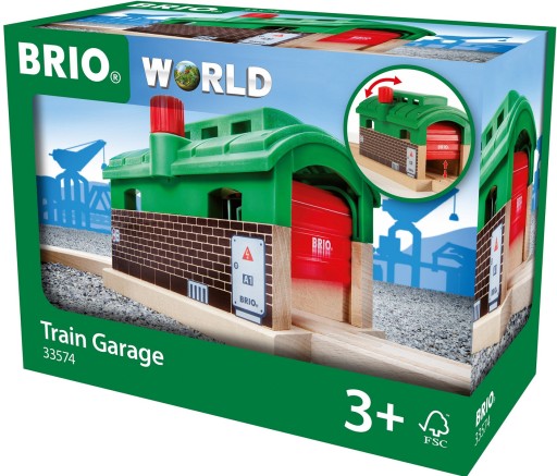 Після довгого робочого дня поїзди повертаються в депо ввечері, щоб відпочити перед наступним днем. Одиночний гараж для локомотива Brio — ідеальне місце, щоб відпочити та провести необхідне технічне обслуговування. Поверніть ручку на даху круглого будинку, щоб відкрити або закрити двері гаража. Якщо залишити відкритим, депо можна використовувати як додатковий тунель протягом дня. Депо сумісно з іншими наборами Brio, з якими з'єднується за допомогою дерев'яних рейок.