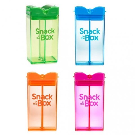багаторазовий контейнер для снеків, у формі картонної коробки. Така форма дозволяє максимально використовувати простір у ланч-боксі, щоб можна було зібрати якомога більше снеків для дитини в школу, подорож чи іншу прогулянку.