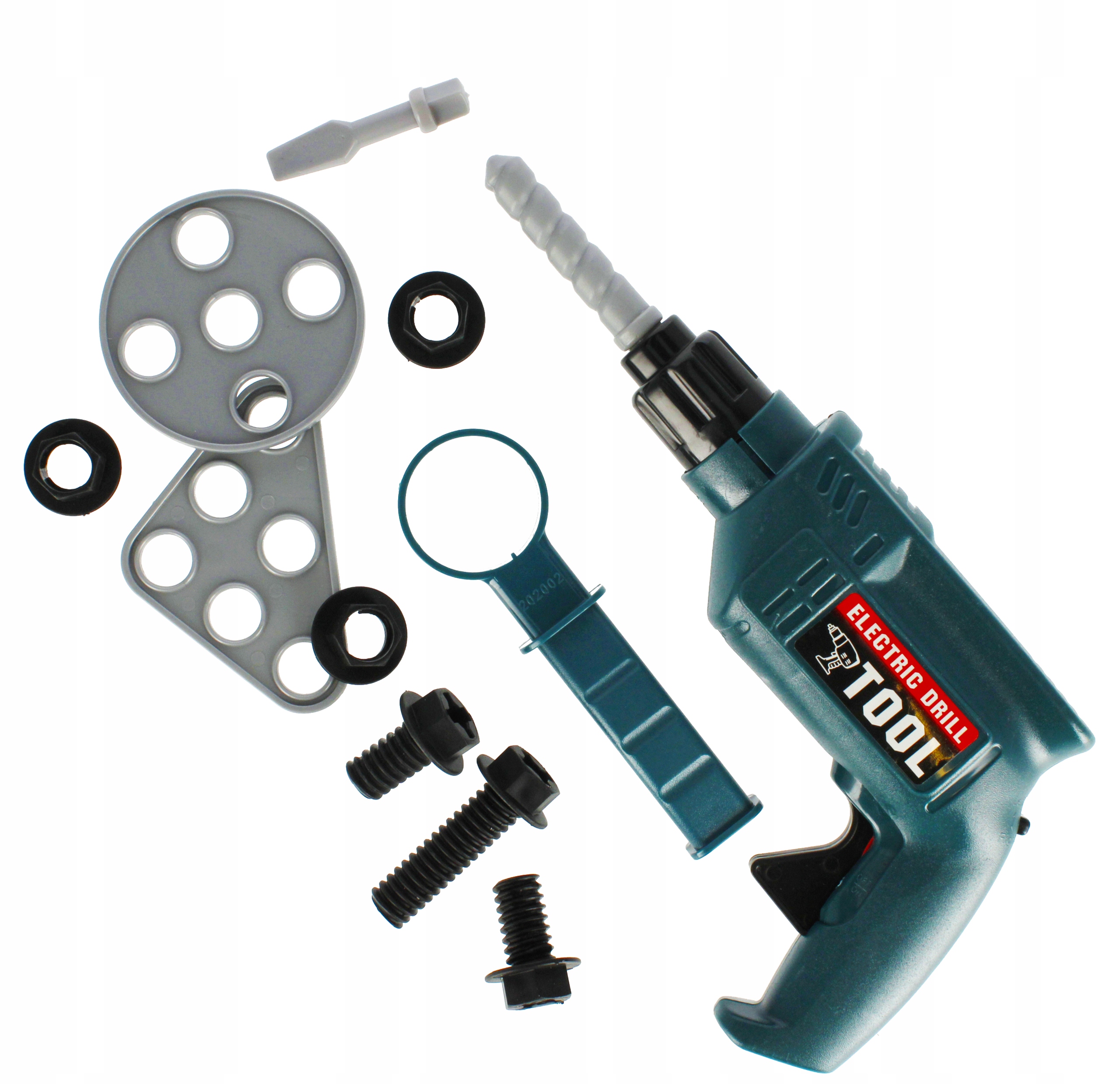 - Zawartość zestawu: wkrętarko-wiertarka, klucz udarowy, śrubki, nakładki na śrubki, podkładki na śrubki.