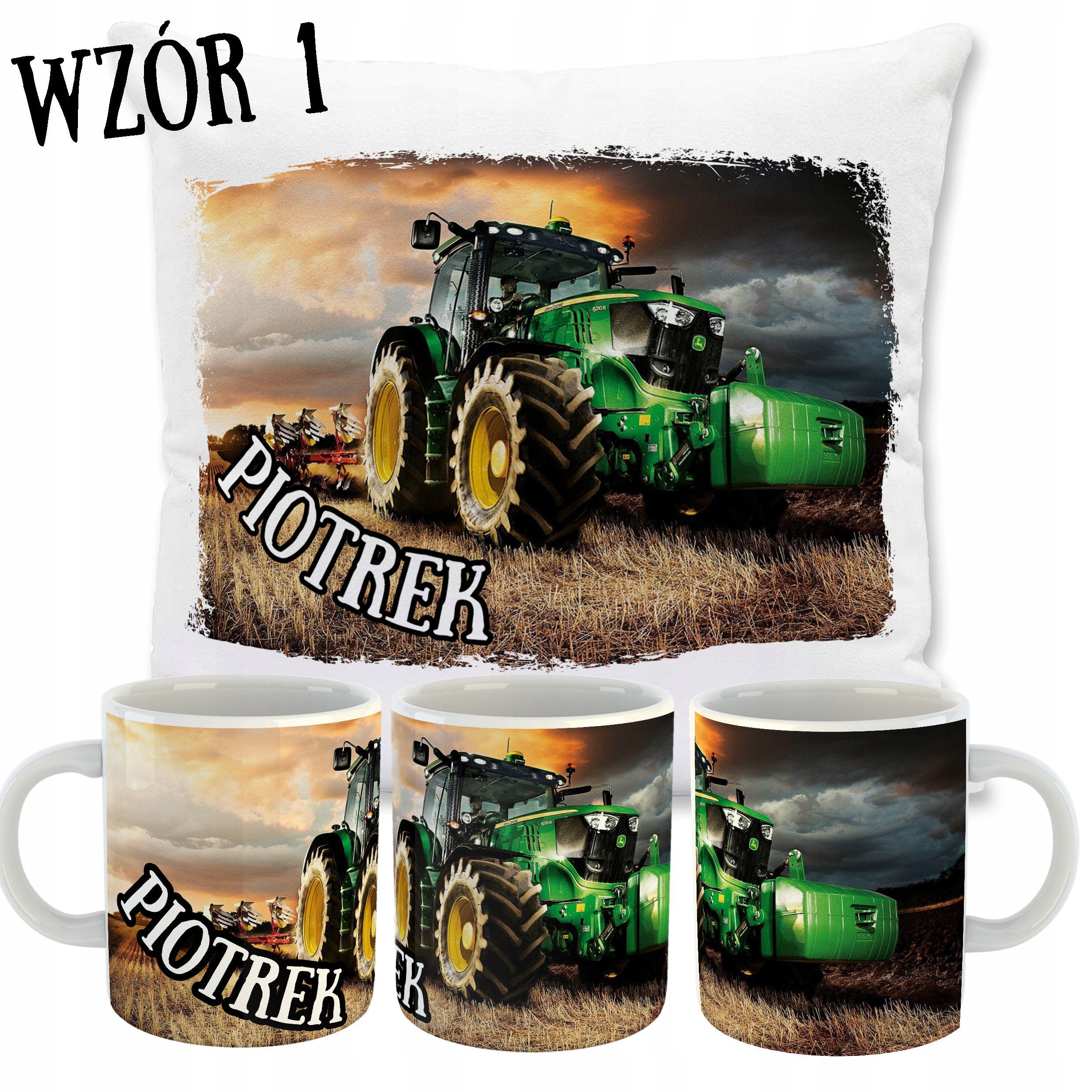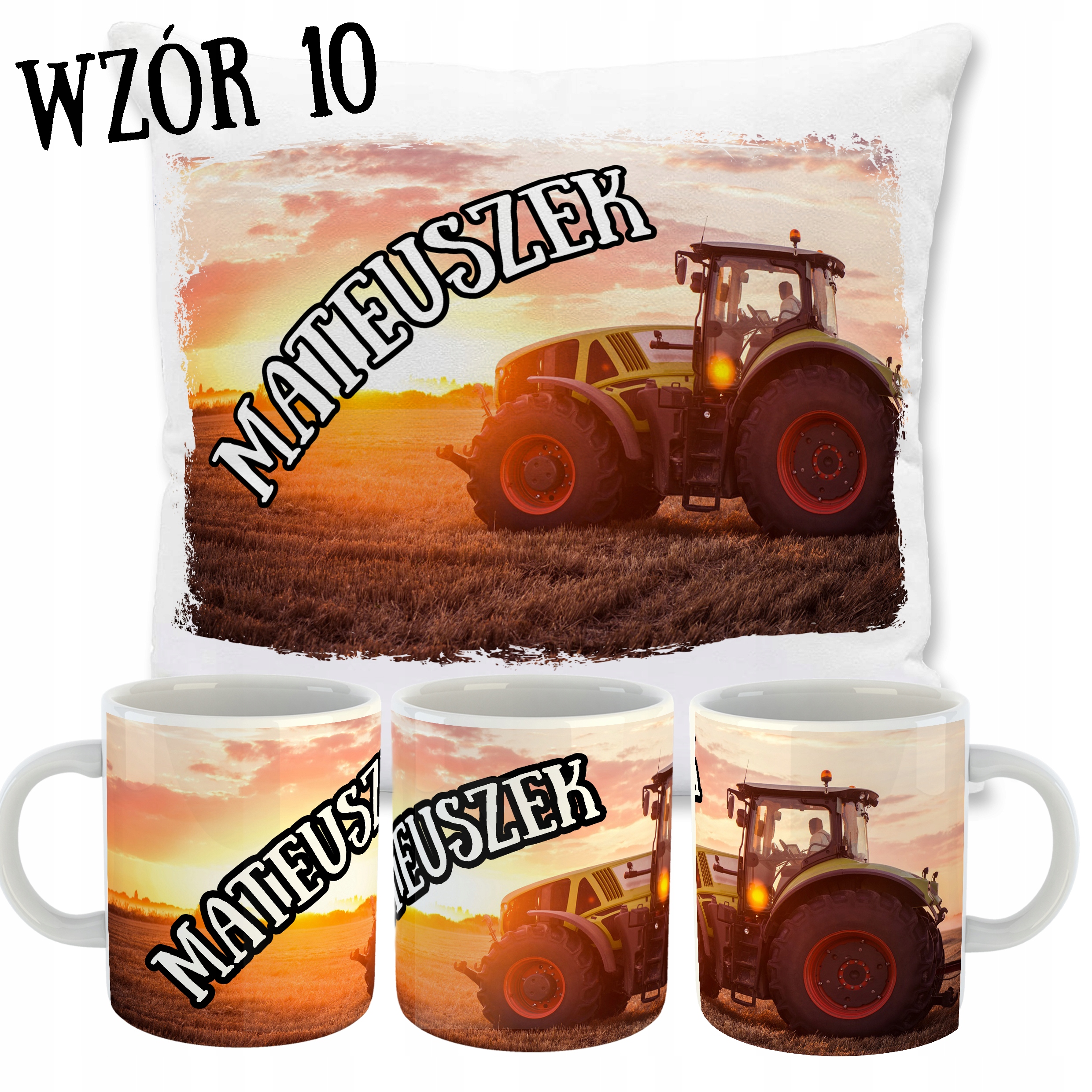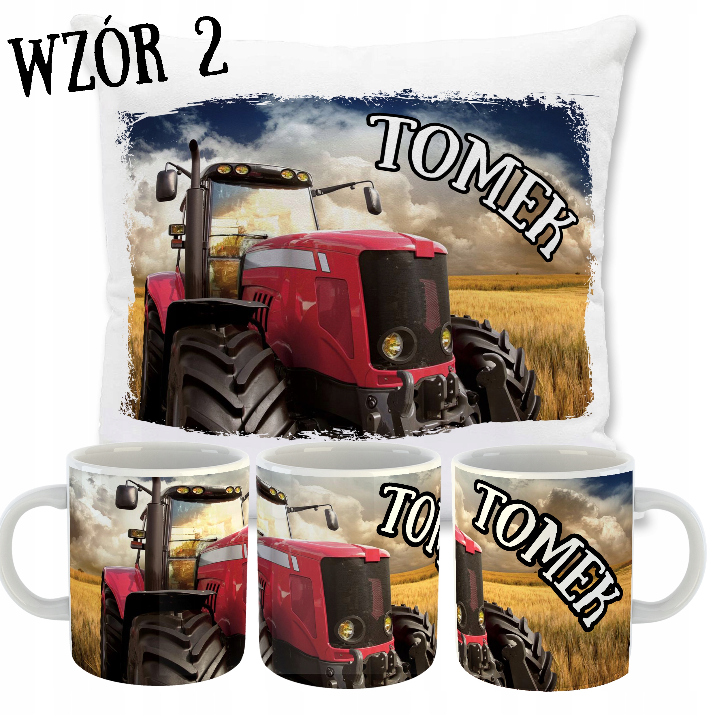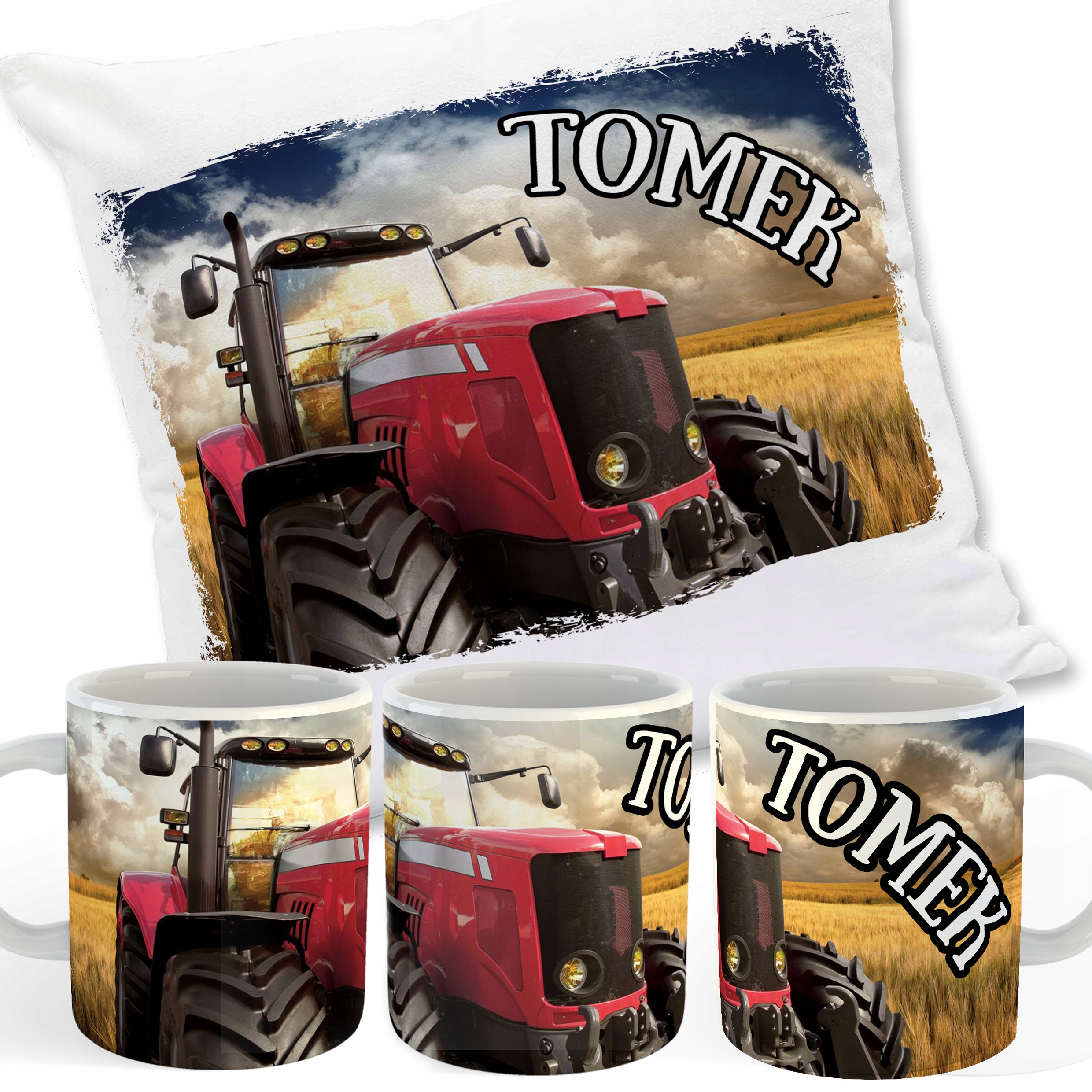 ZESTAW PODUSZKA + KUBEK TRAKTORY + TWOJE IMIĘ!