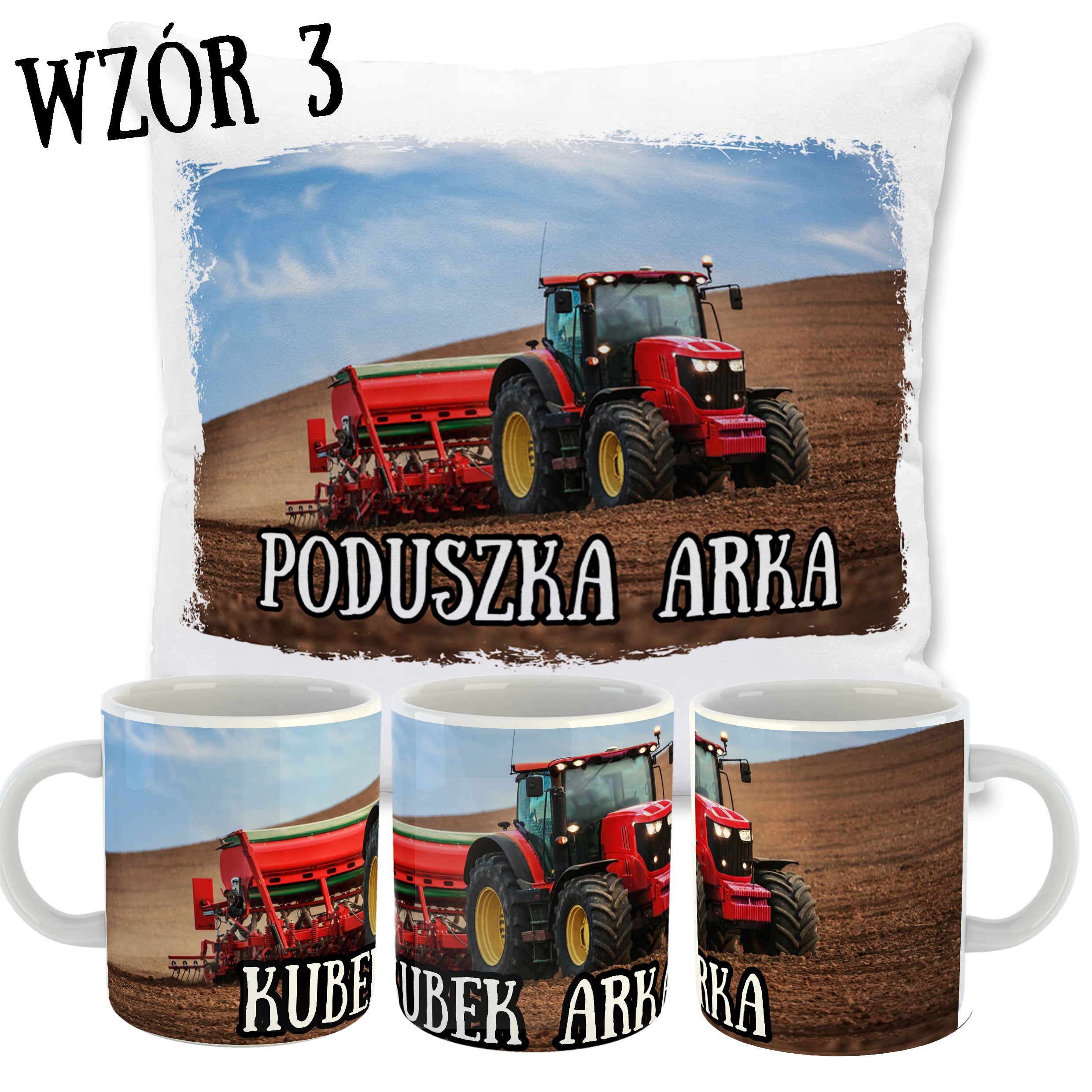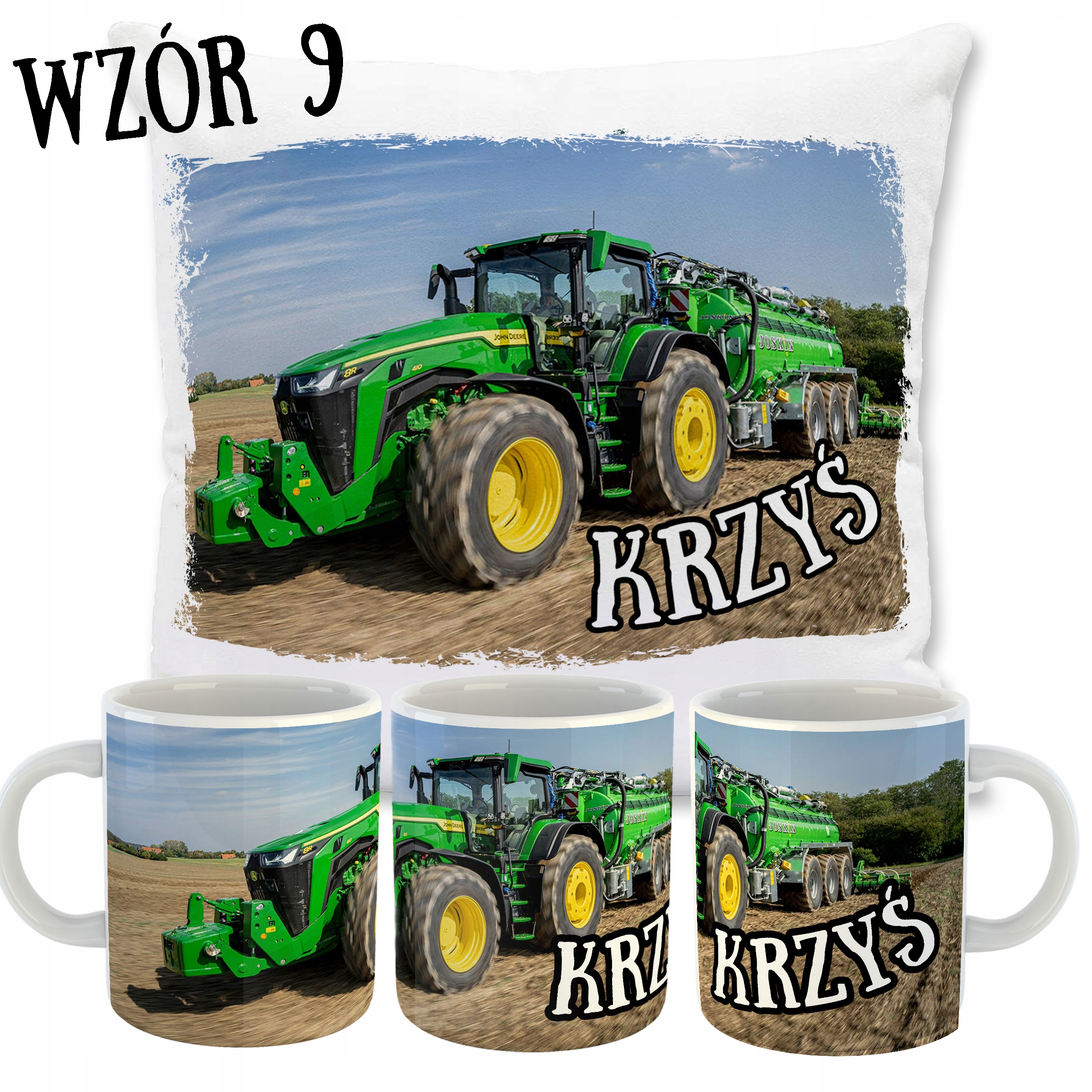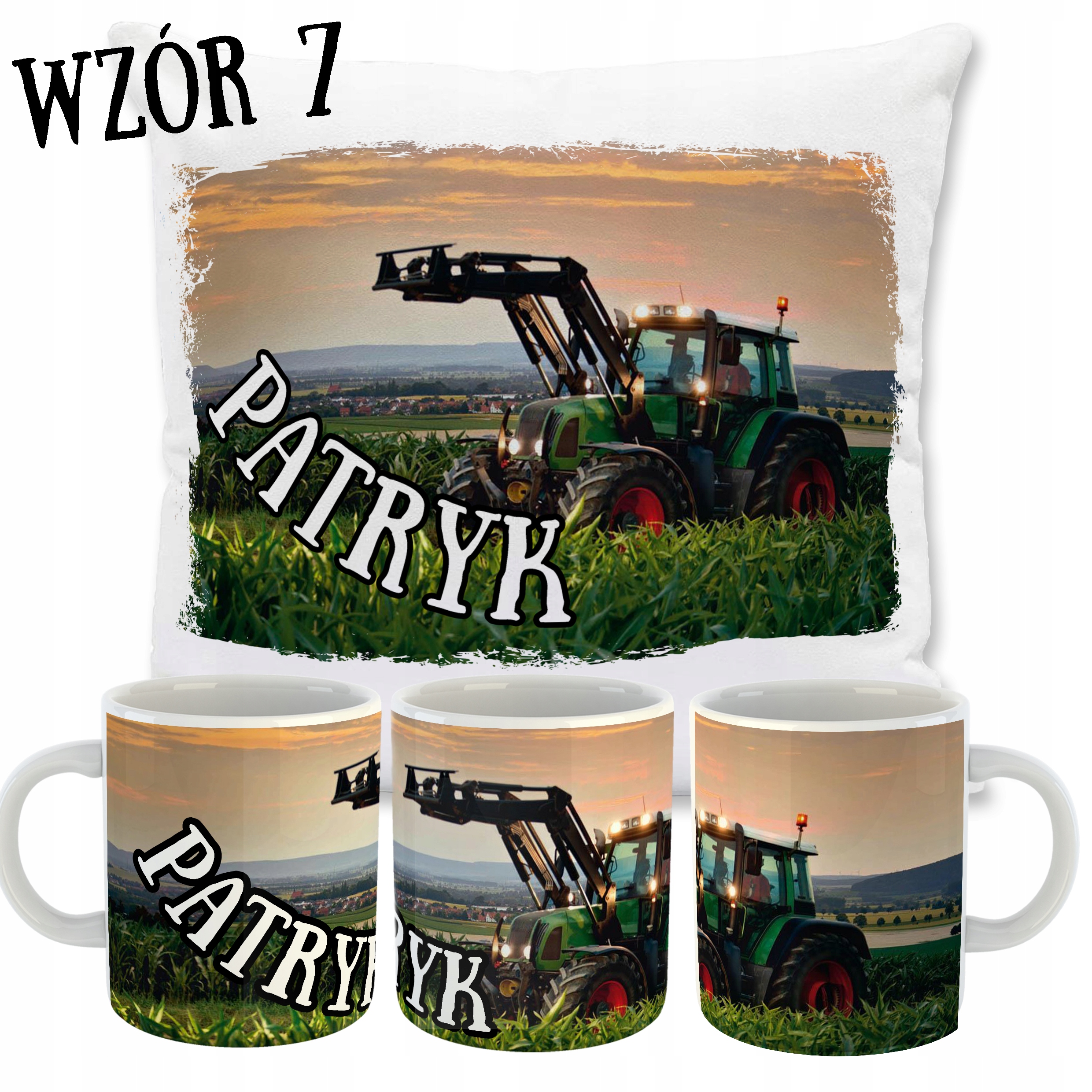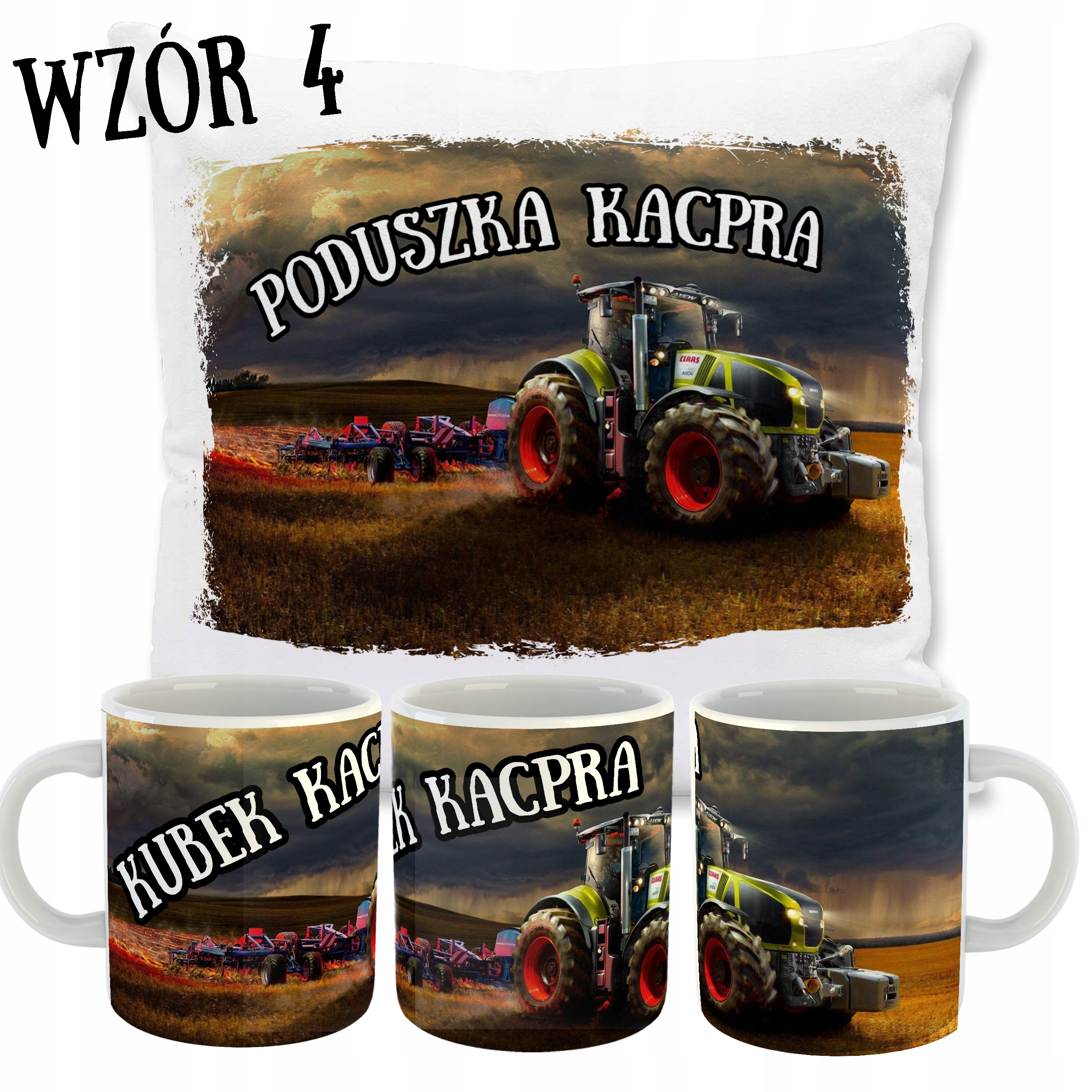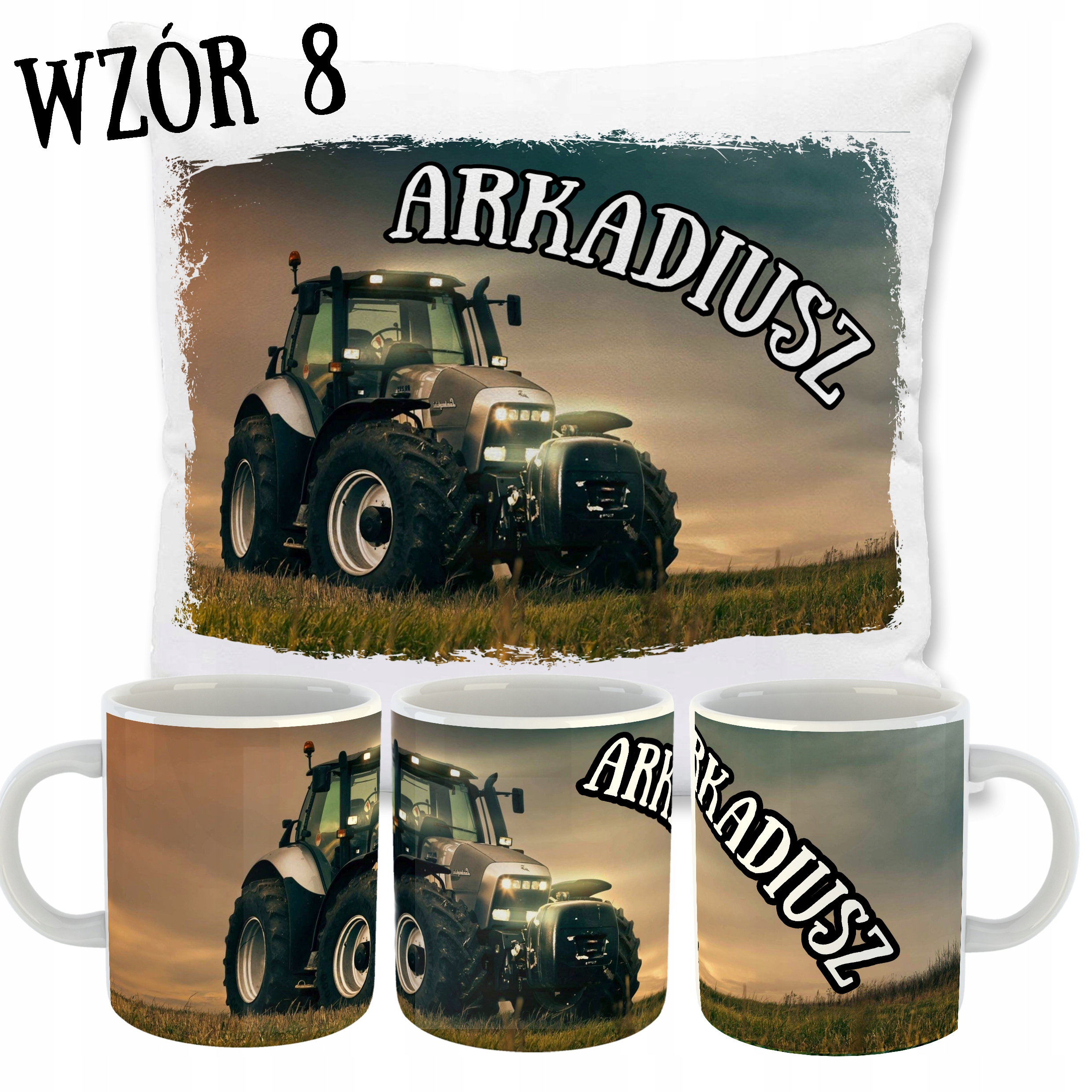 ZESTAW PODUSZKA + KUBEK TRAKTORY + TWOJE IMIĘ!