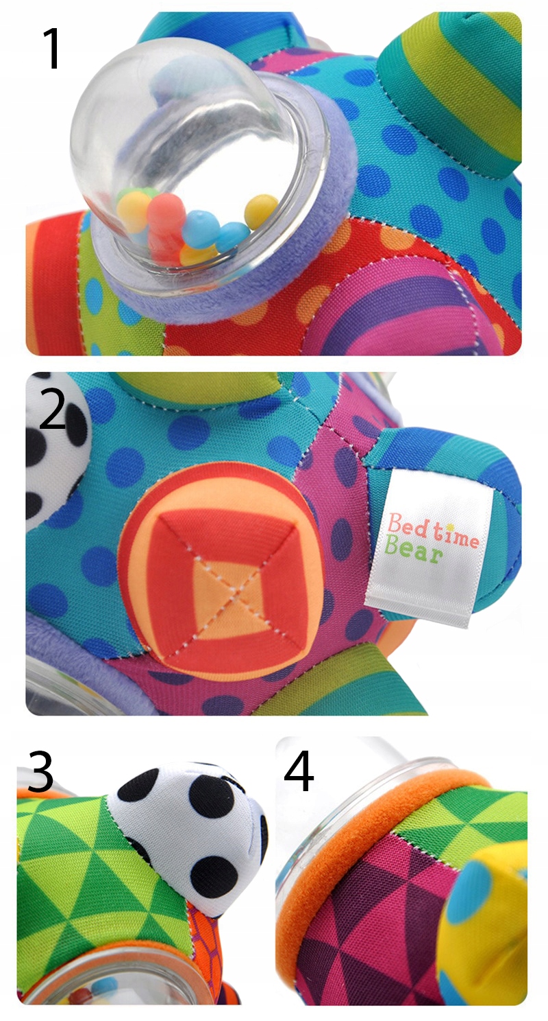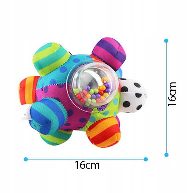 Dzięki wypustkom, grzechotce oraz przyjemnym kolorom można dziecko zachęcić do zabawy. Dodatkowo wszystkie elementy są na stałe zszyte, więc dziecko bez obaw może bawić się tą zabawką bez żadnego ryzyka dla zdrowia.