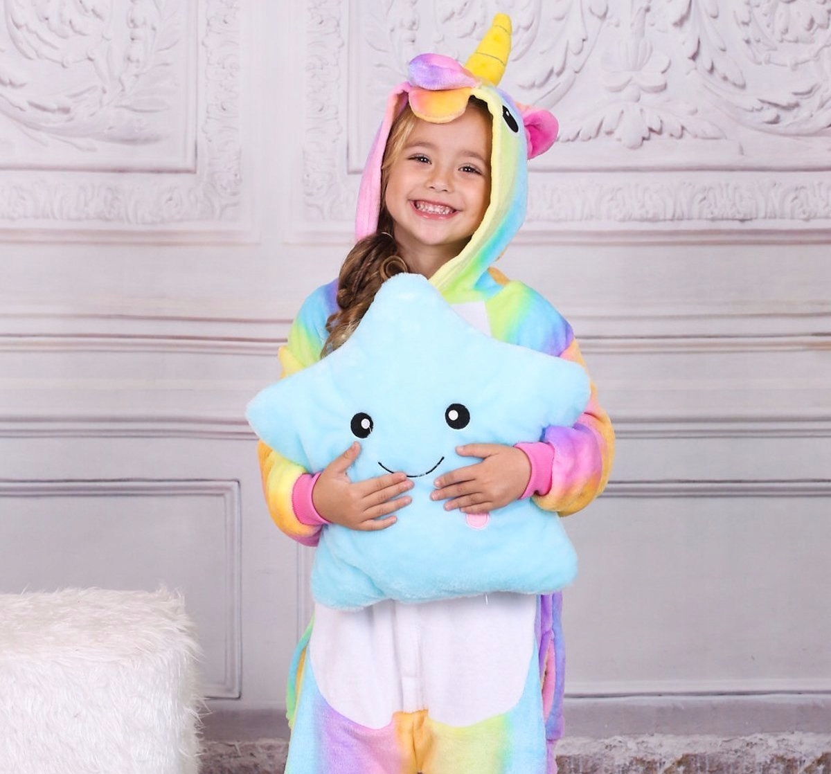 - BEZPIECZNA – poduszka wykonana z mikrofibry, co sprawia że jest mięciutka i przyjazna dla malucha. Oczy oraz usta gwiazdki zostały naszyte – nie ma ryzyka, że dziecko połknie jakąś część.