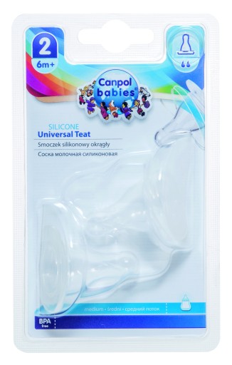 Кругла силіконова соска середнього потоку підходить для вузьких пляшечок. Він відмінно пропускає повітря і не злипається під час годування. Виготовлена з високоякісного силікону. Не має ні смаку, ні запаху. Пристосована для багаторазової дезінфекції. Призначений для дітей віком 6-12 місяців. 2 штуки в упаковці.