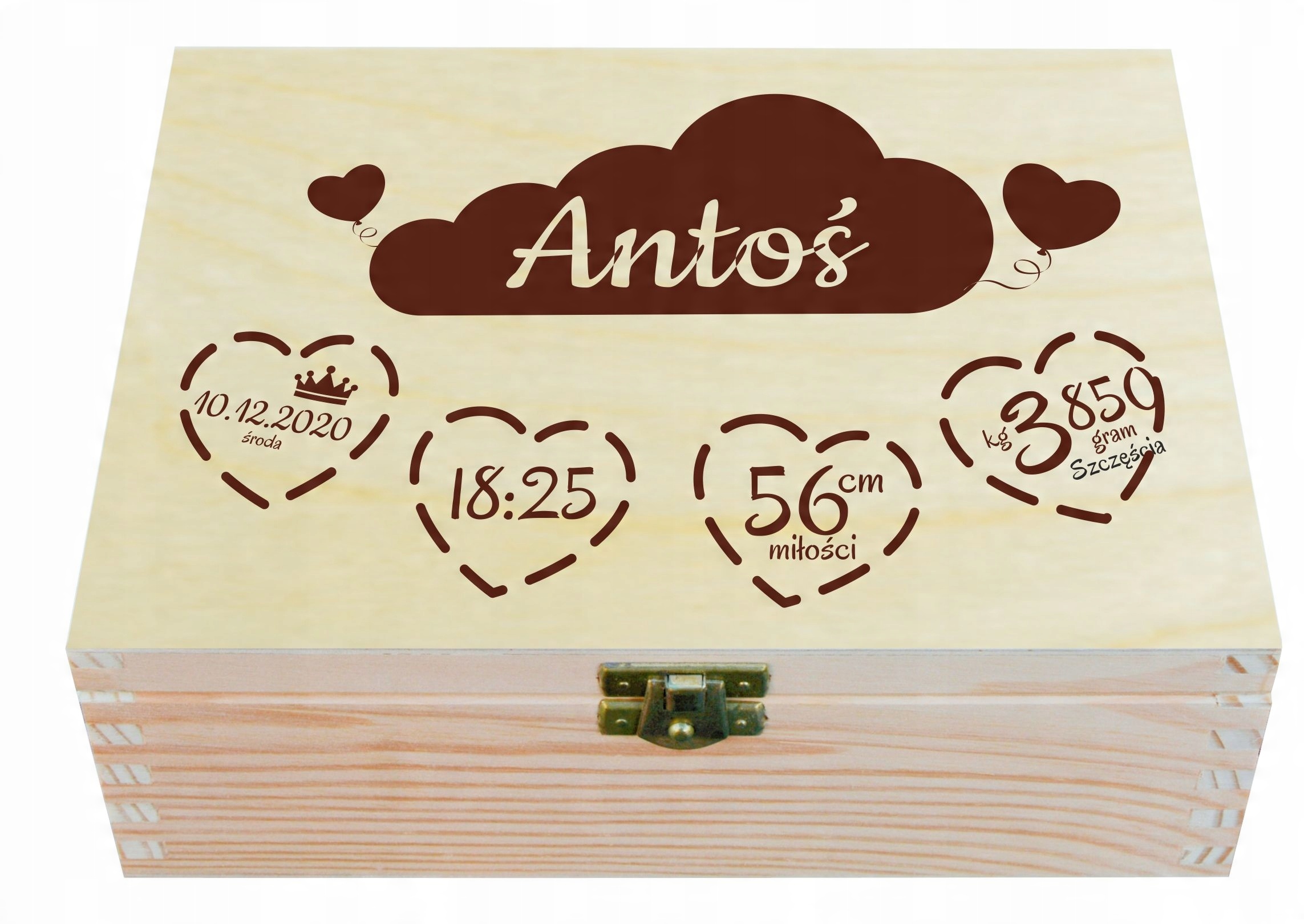 Pudełko jest idealnym podarunkiem i pamiątką z okazji chrztu, urodzin lub pierwszych urodzin.