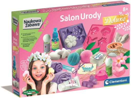 У набір входить усе необхідне, щоб наблизитися до світу косметики та зробити парфумовані пінки, бомбочки для ванн, мило, креми та багато іншого за кілька простих кроків. Детальні інструкції супроводжують дітей на окремих етапах експериментів, що проводяться в абсолютно безпечних умовах, і пояснюють принципи, покладені в основу косметології.