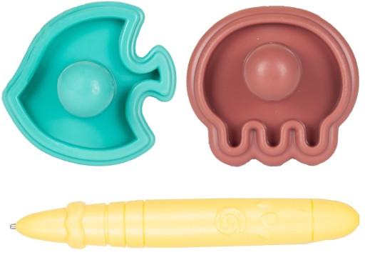 У набір також входять 2 штампи: у формі рибки та восьминога та фломастер, який дозволяє створювати різноманітні візерунки та літери,