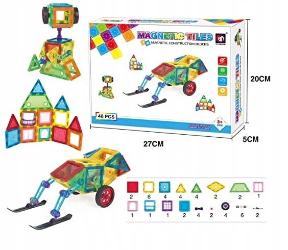 SUPER MEGA ZESTAW KLOCKI MAGNETYCZNE 48el