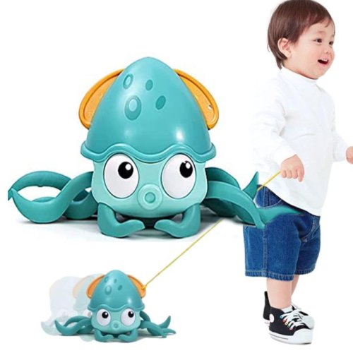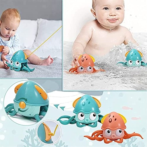 Чудова рухлива іграшка, для роботи якої не потрібні батарейки. Розвага може відбуватися у ванні або на підлозі. Є і третій варіант - прикріпити шнурок і дитина може тягнути восьминога за собою, приводячи в рух його довгі щупальця.