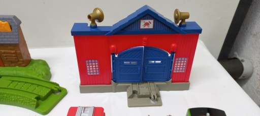 2 локомотива червоний і зелений живляться від батарейок і працюють у включеному стані