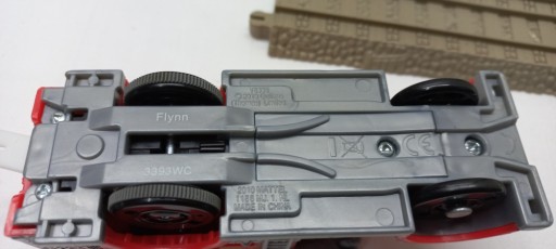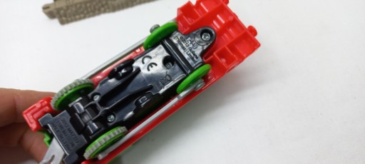 довжина червоного локомотива з вагоном 26 см, зеленого з вагоном 21 см.