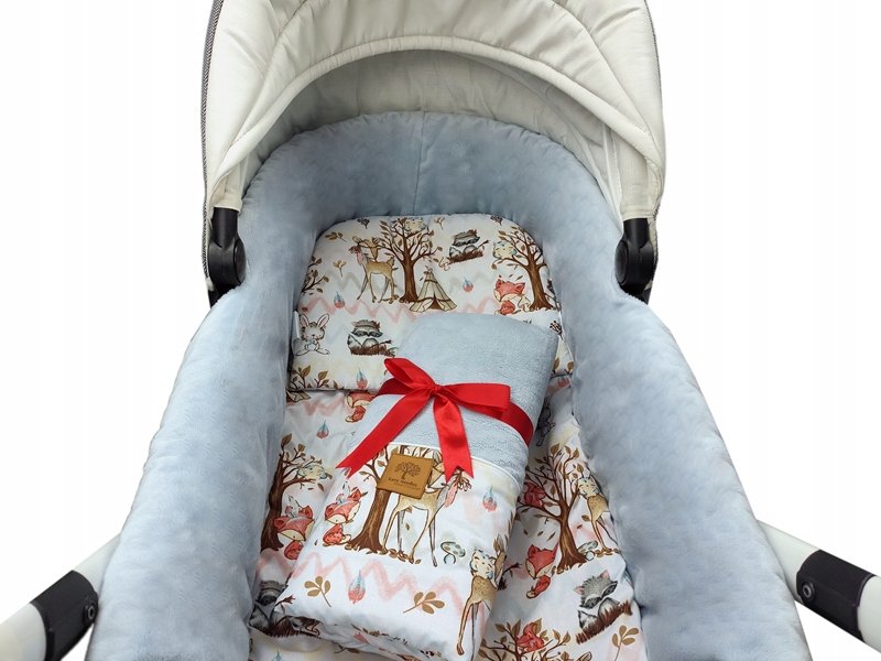 - Ze względu na gramaturę minky zastosowaliśmy lekkie wypełnienie wewnącz aby nie zmniejszać powieżchni użytkowej wózka. Minky swoją miękkością stanowi zabezpieczenie przed uderzeniem podczas poruszania się maluszka.