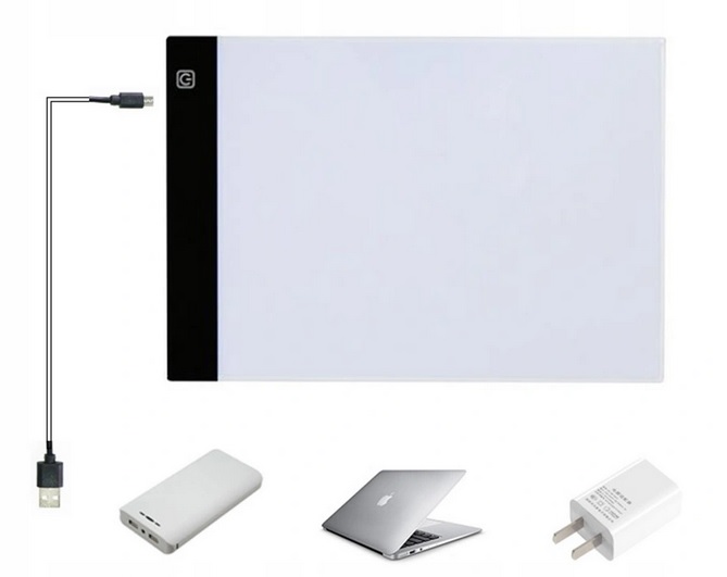 Mała waga i grubość ( około 5mm) sprawiają, że produkt można zabrać w podróż. Rysunki można wykonywać w różnych pozycjach dzięki wykonaniu z twardego szkła akrylowego. Rysunki można usztywnić dzięki zastosowaniu klamerek. 3 poziomy mocy oświetlenia LED ułatwiają pracę.