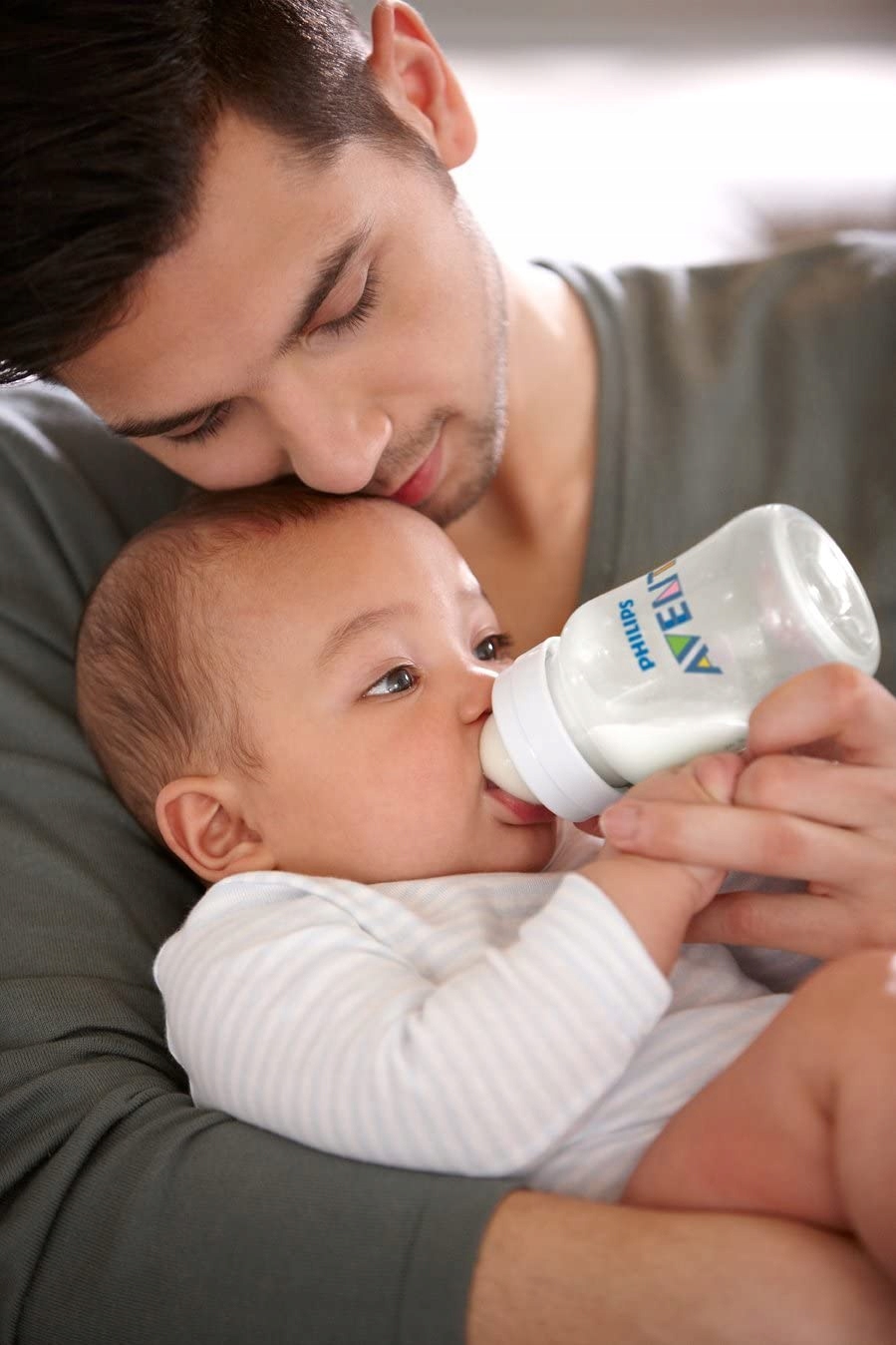 Powietrze jest odprowadzane do butelki z dala od brzuszka dziecka.