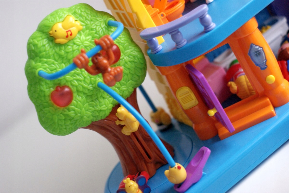 Każda z funkcji domu to kreatywna zabawa, która pobudzi twórczość dziecka. W obu trybach wiewiórka będzie wdrapywała się na drzewo z góry na dół, a małpka będzie kręciła się wokół poręczy. Kolorowy motylek po przekręceniu będzie się obracał, a samochodzik objeżdżał drzewo dookoła. Zabawka wspomaga naukę codziennych czynności domowych, jak również uczy logicznego myślenia oraz pobudza wyobraźnię.