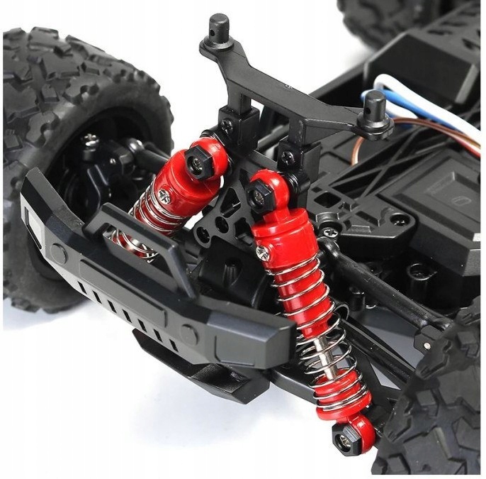 Prezentowany model jest wyposażony również w 4 niezależne amortyzatory i duże terenowe koła. Ze względu na niewielką masę własną, dobrze sprawdzi się w jeżdżeniu po terenie i skokach. W zestawie znajdziemy akumulator Li-Ion 7.4V o pojemności 1200mAh, który pozwoli na około 20 minut zabawy.